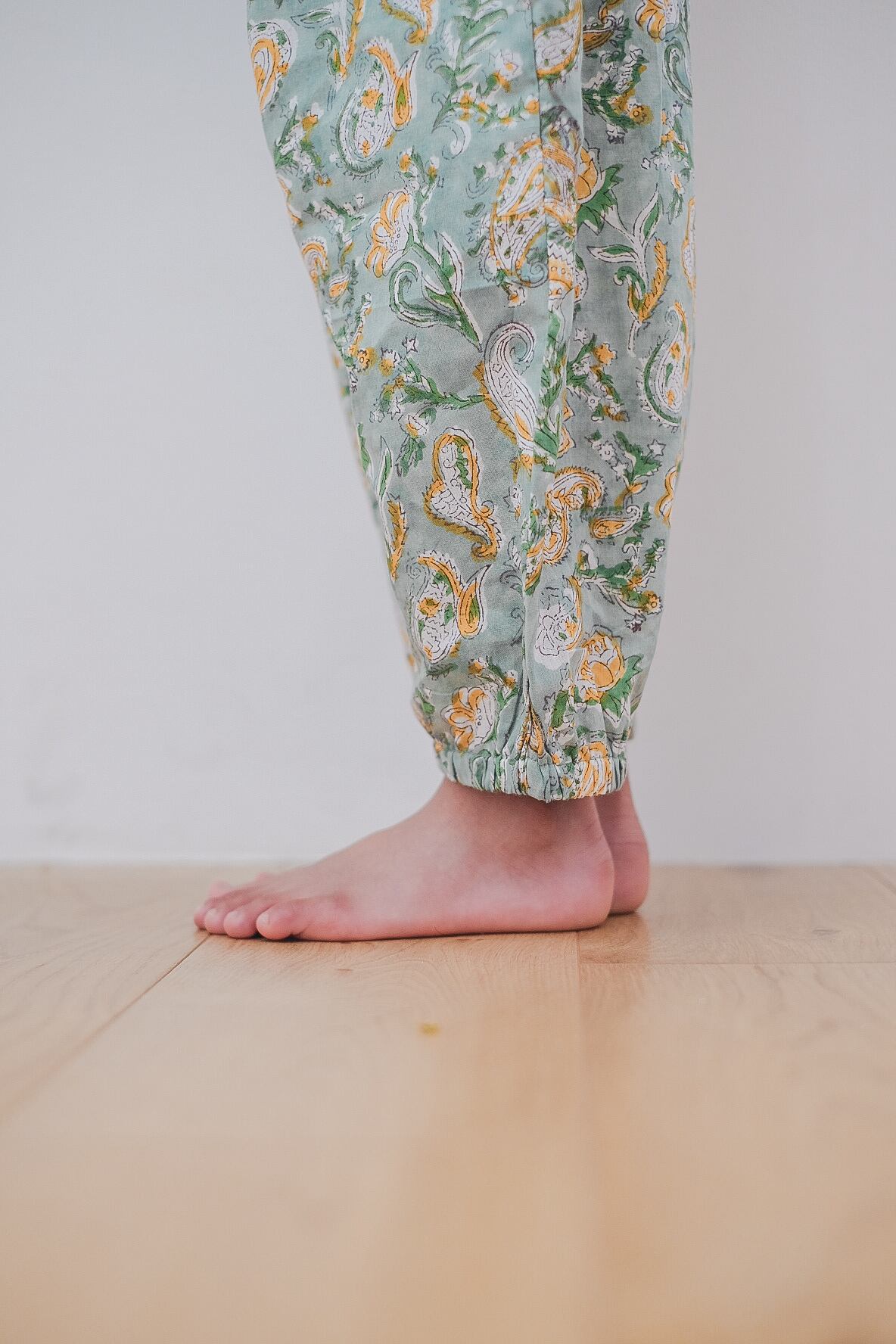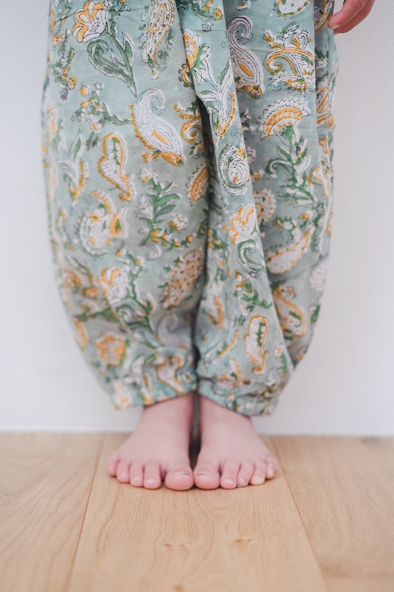 裾はゴム入りで、動きやすく、踏んでも安心。