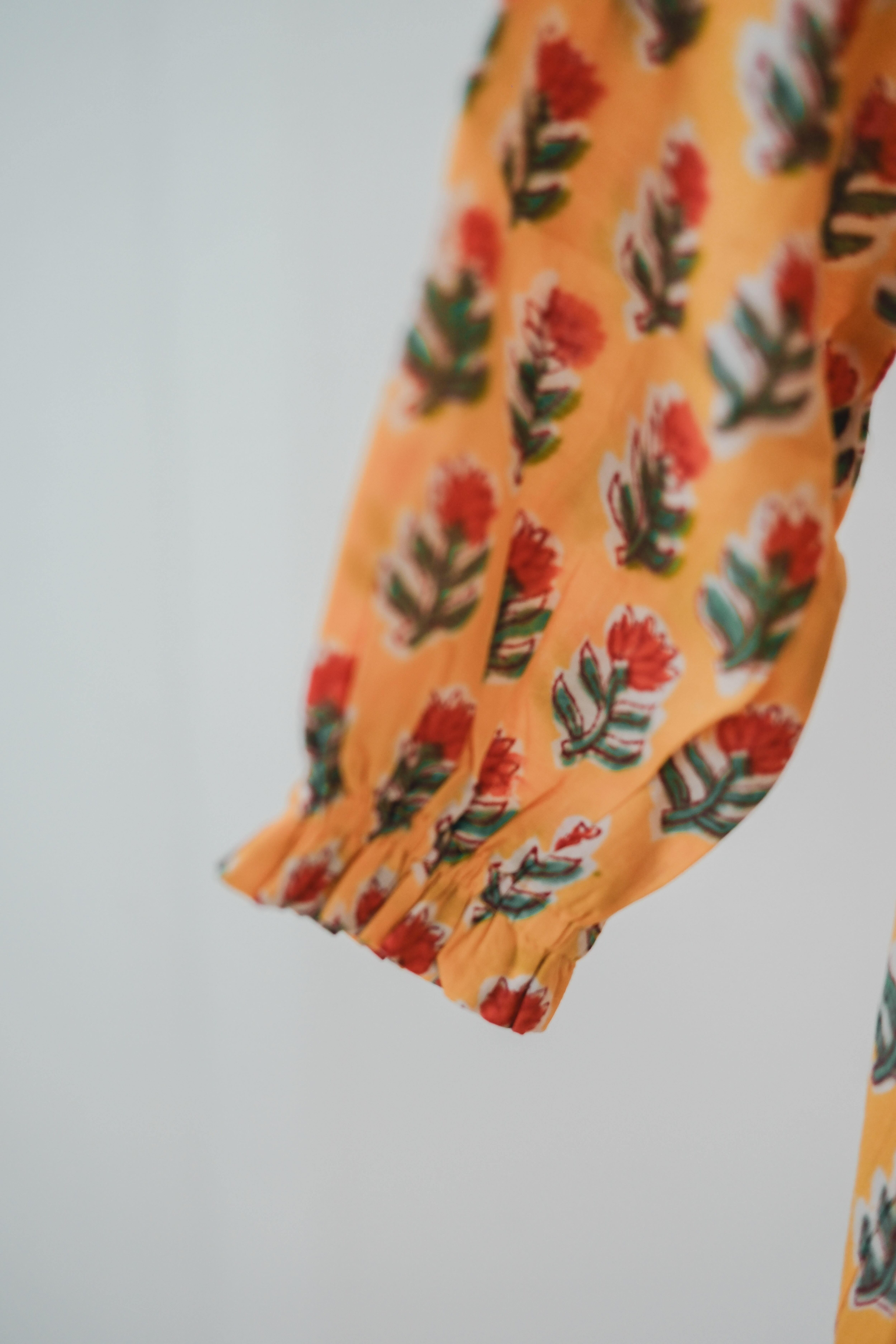 柄は、インドの職人さんが手作業でひとつひとつ刷る「ブロックプリント」。