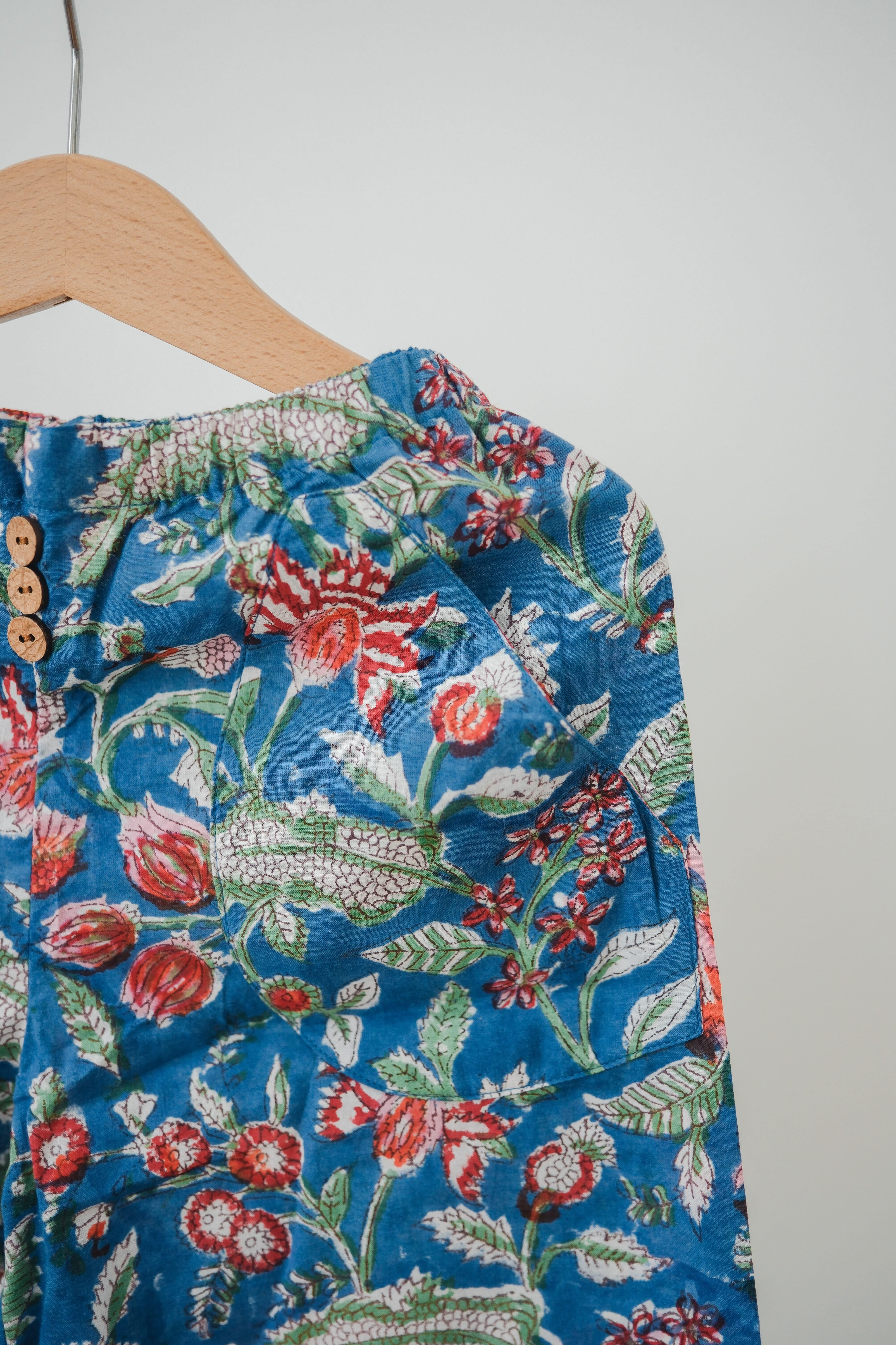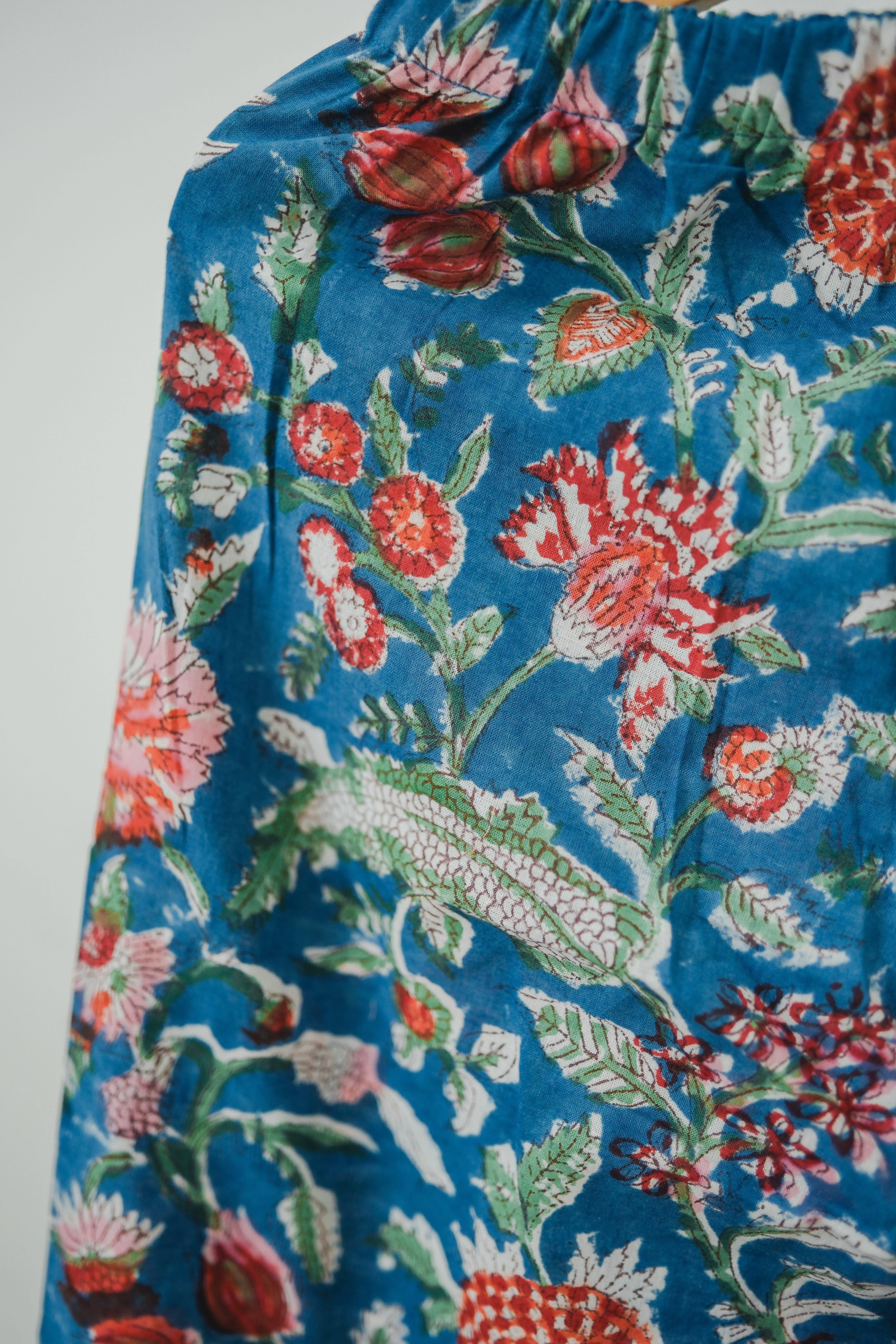 柄は、インドの職人さんが手作業でひとつひとつ刷る「ブロックプリント」。