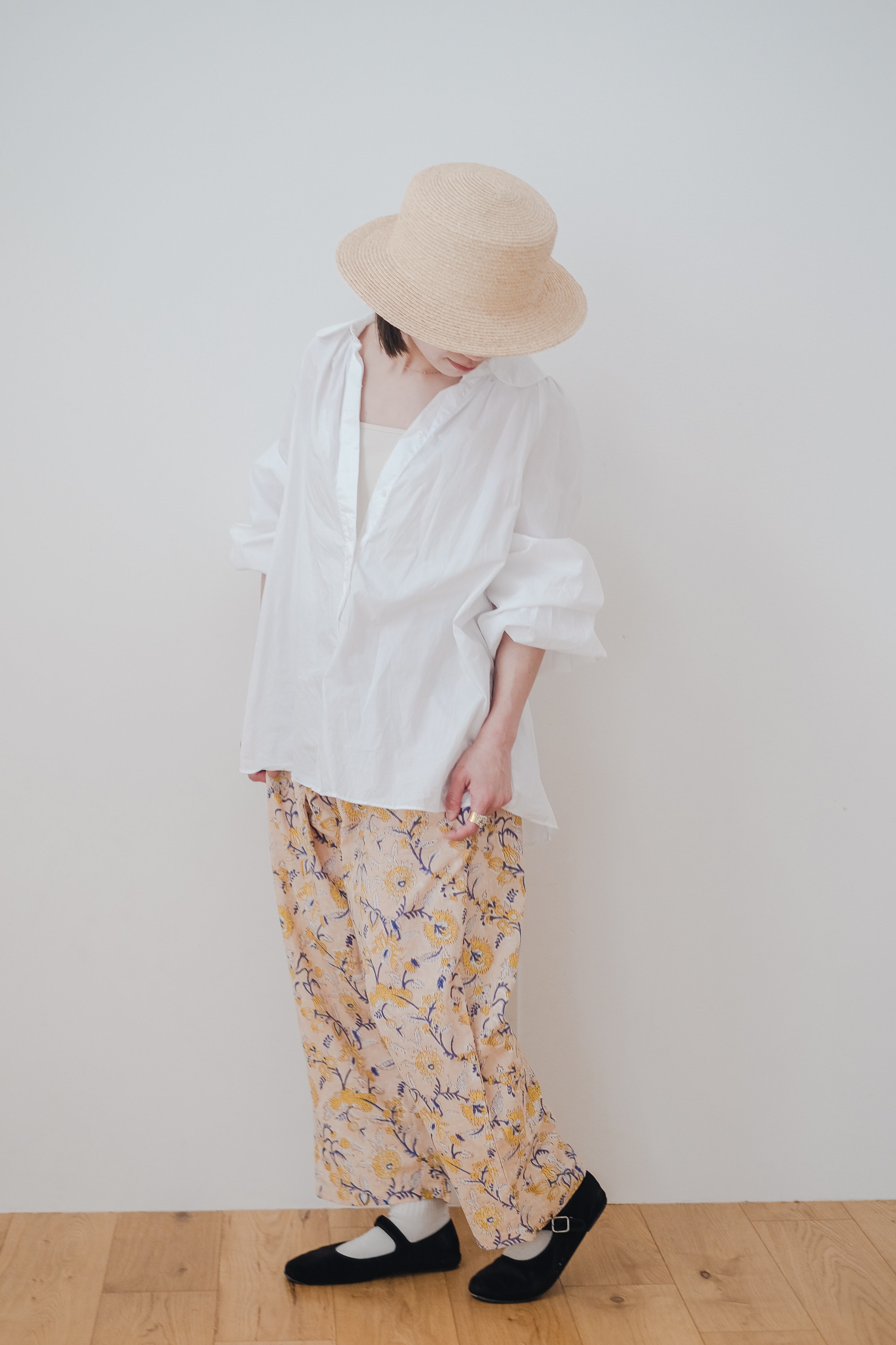 【ベージュ/ブロックプリントパンツ】