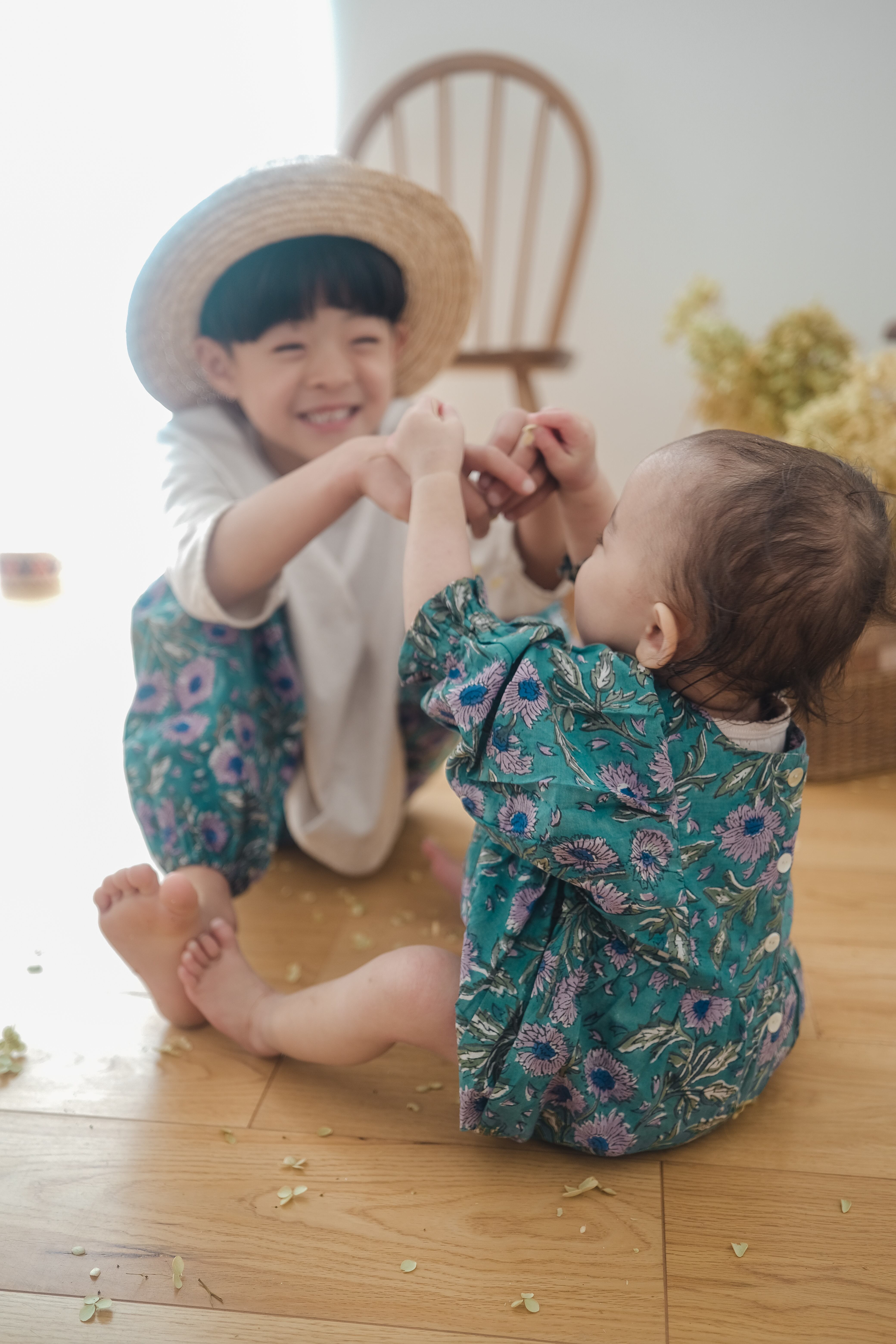 兄弟姉妹でのおそろいや、親子リンクコーデにもおすすめの一枚。