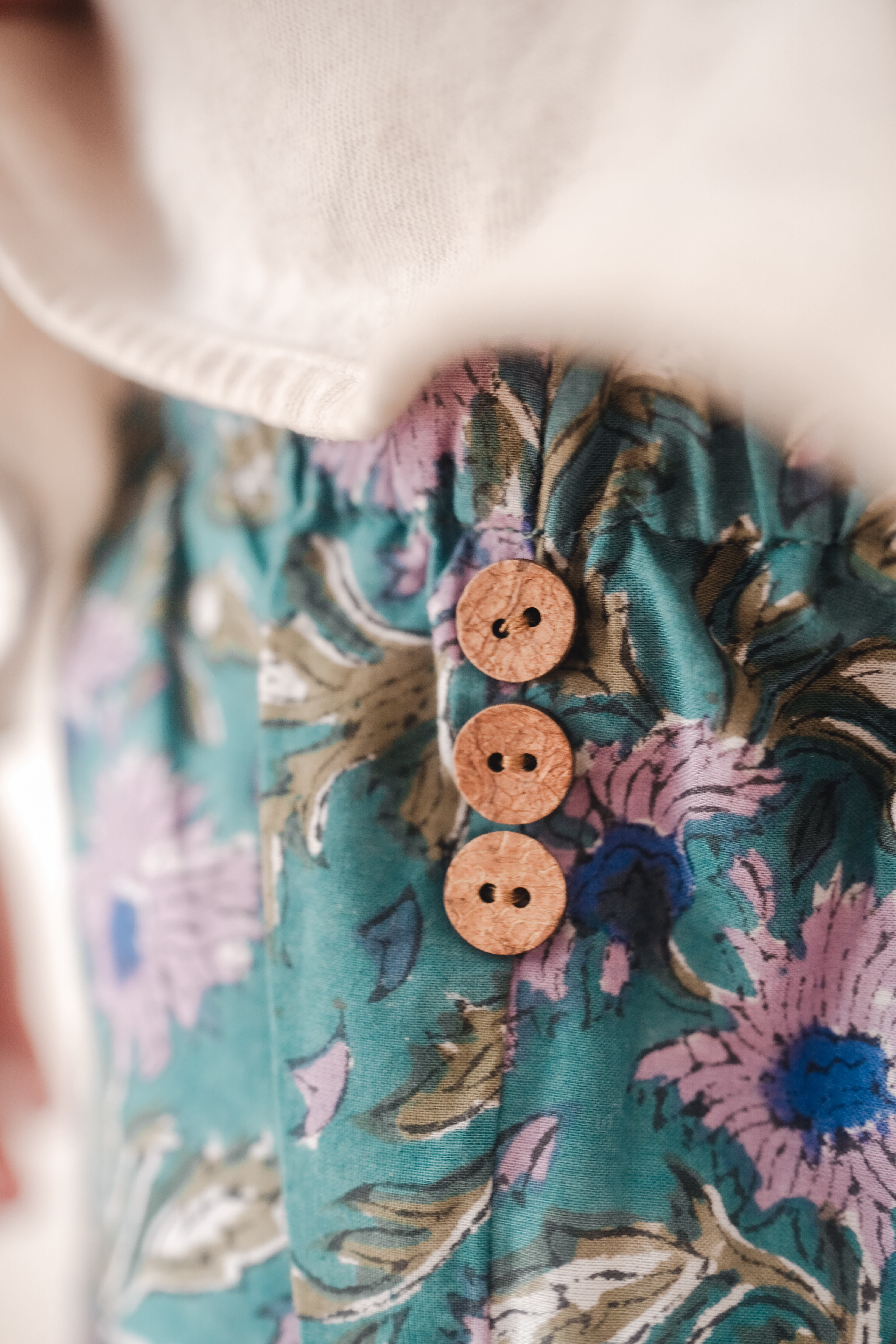 ちいさな可愛いポイントとして、前中心にウッドボタンを3つ並べています。