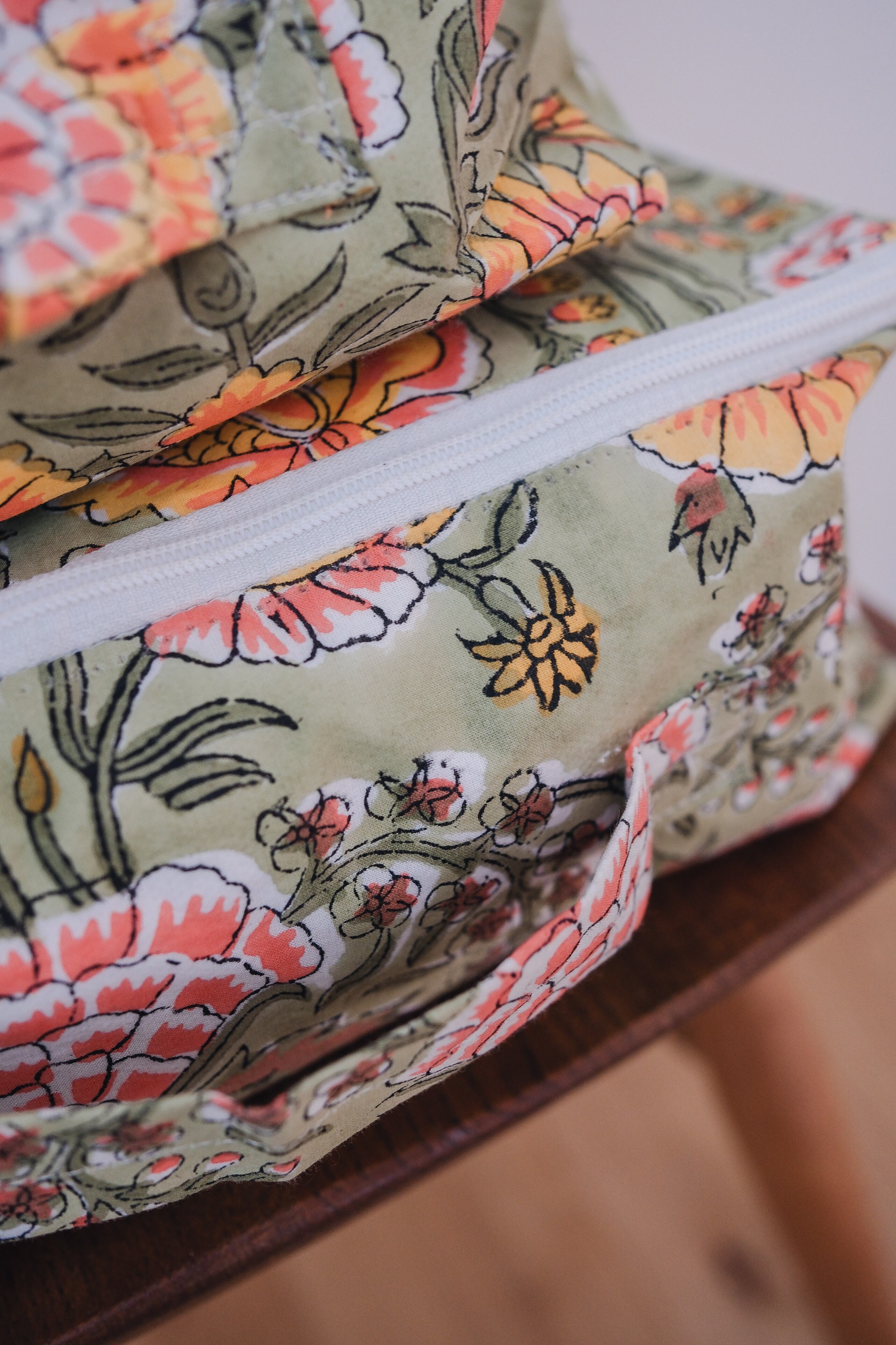 • 外側は綿100%のブロックプリント生地