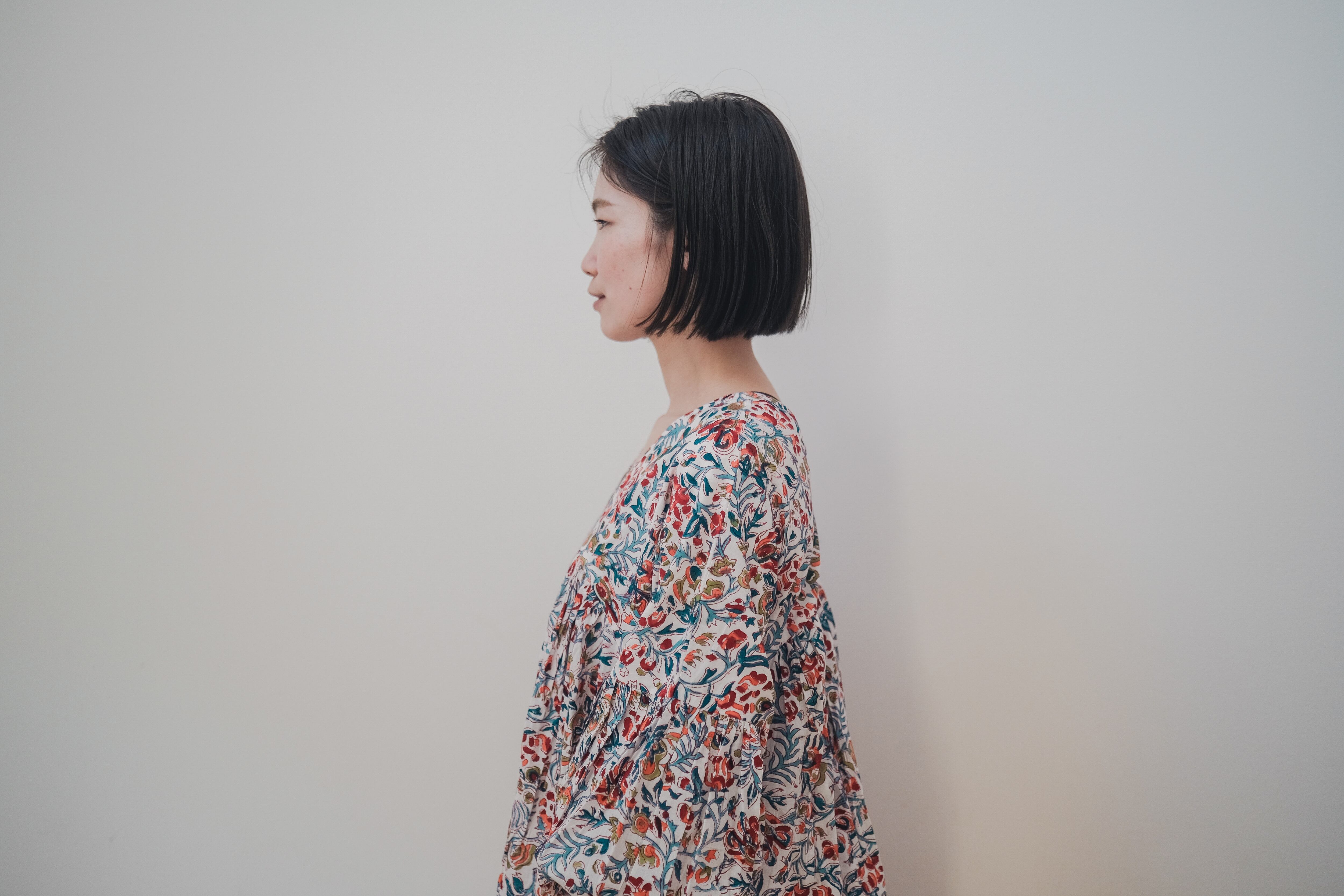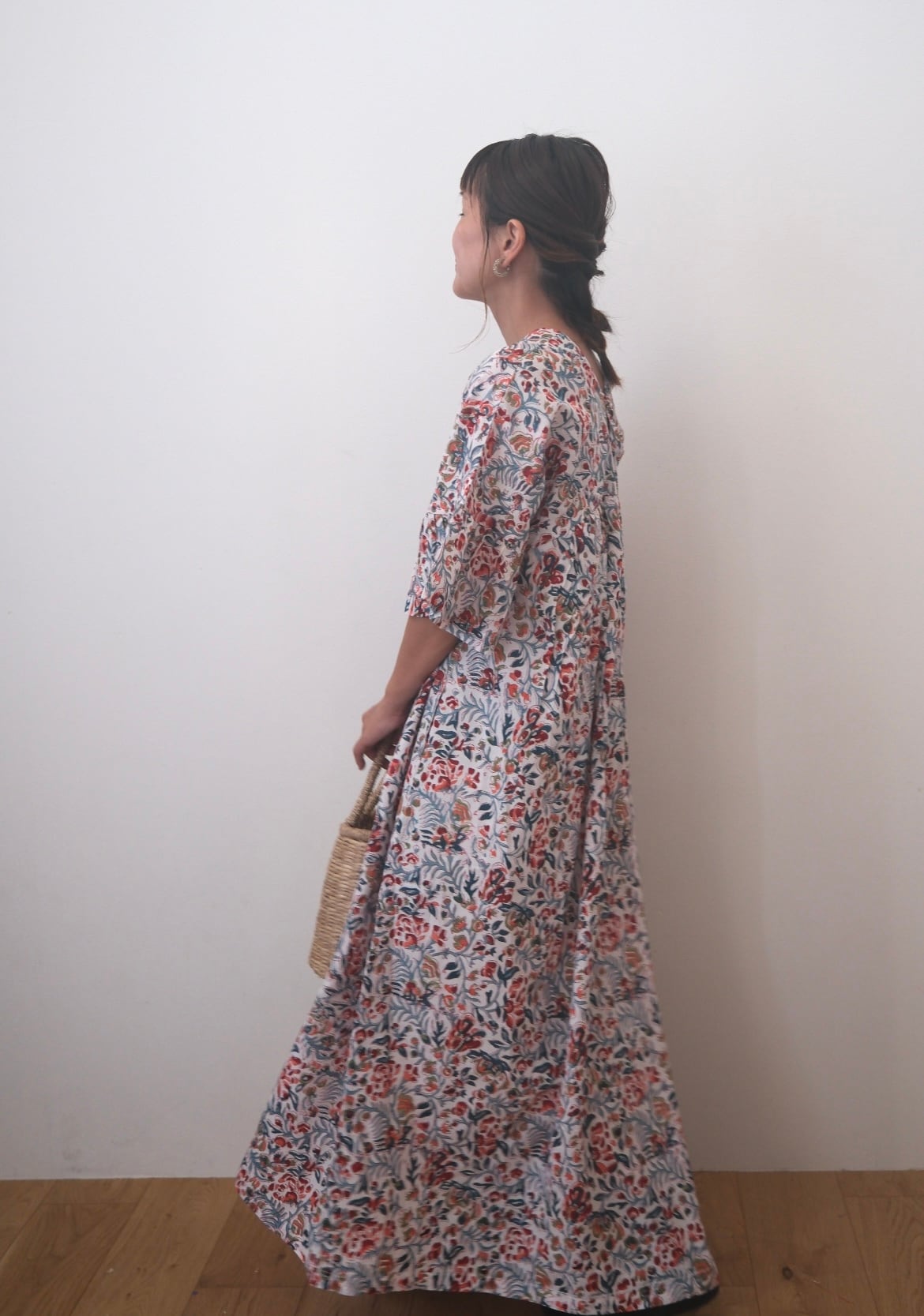 花々が息づくブロックプリントワンピース