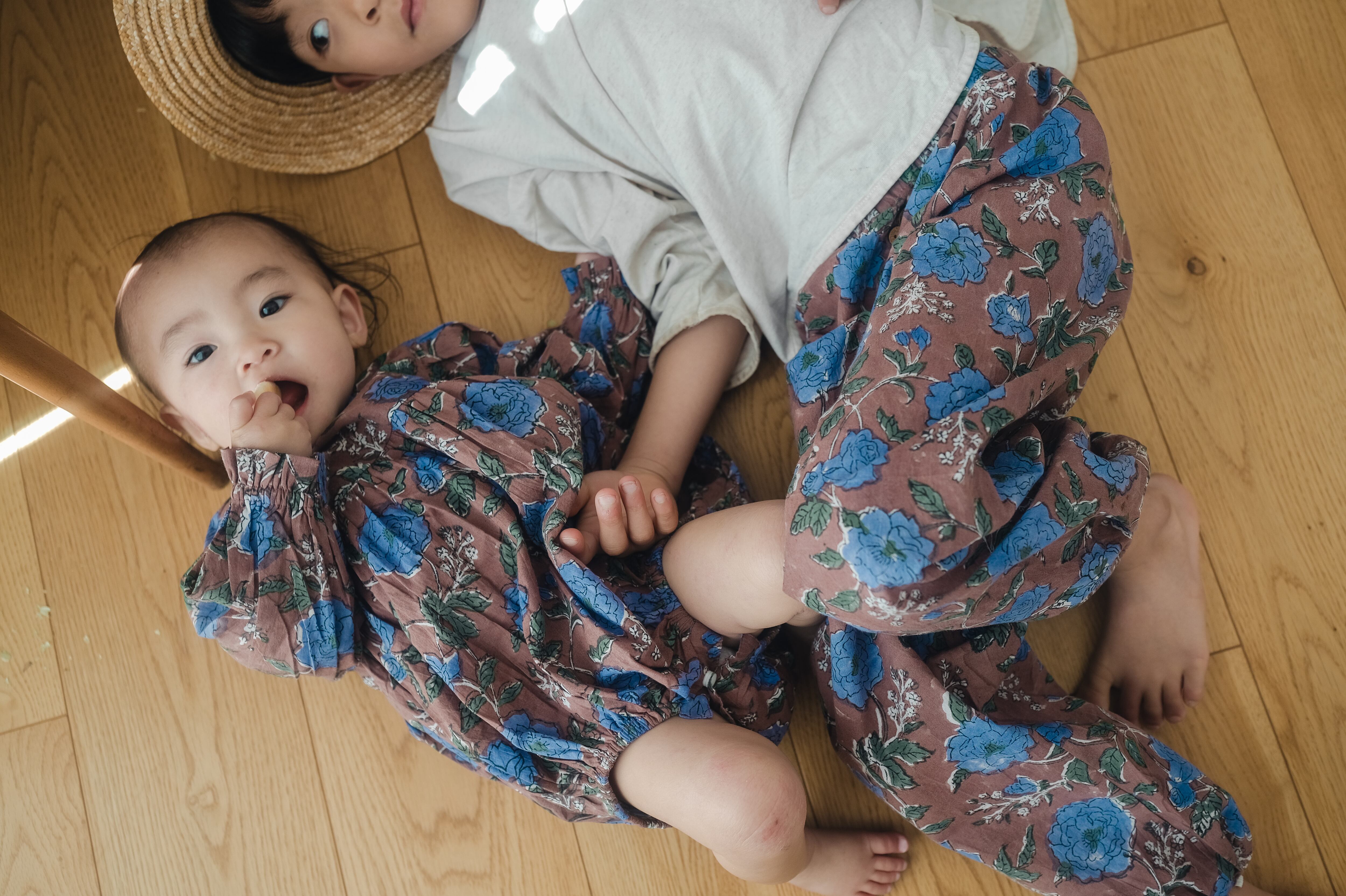 落ち着いたブラウンが、ご家族でのリンクコーデに