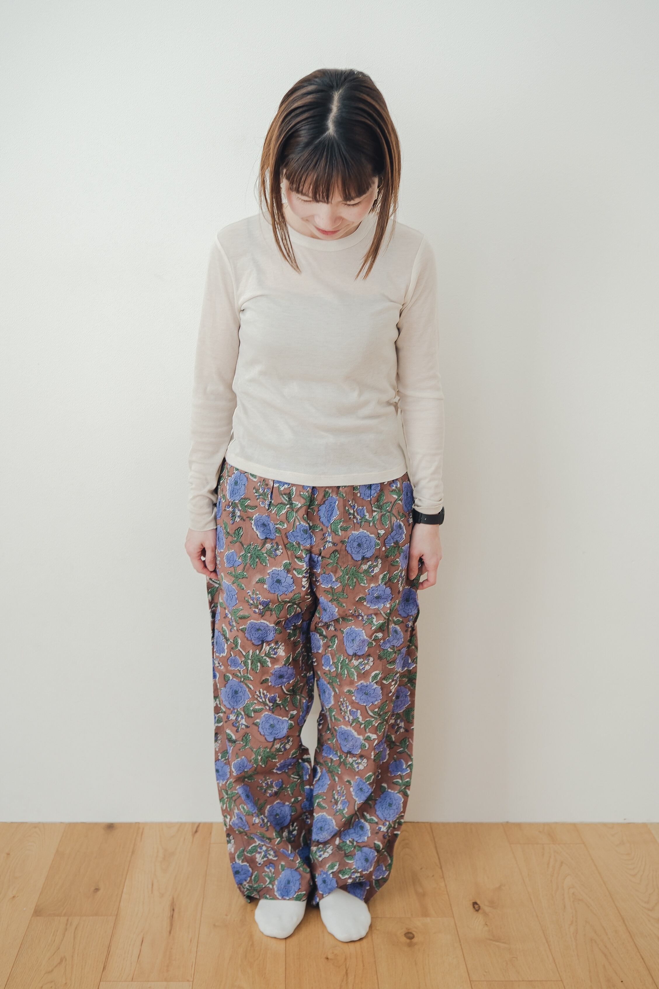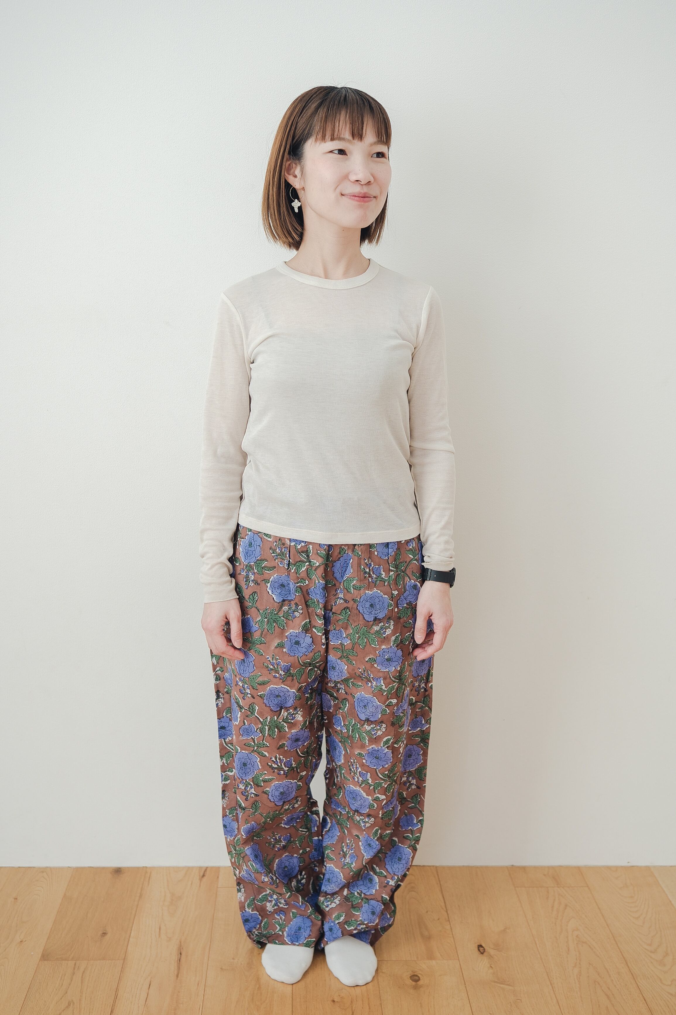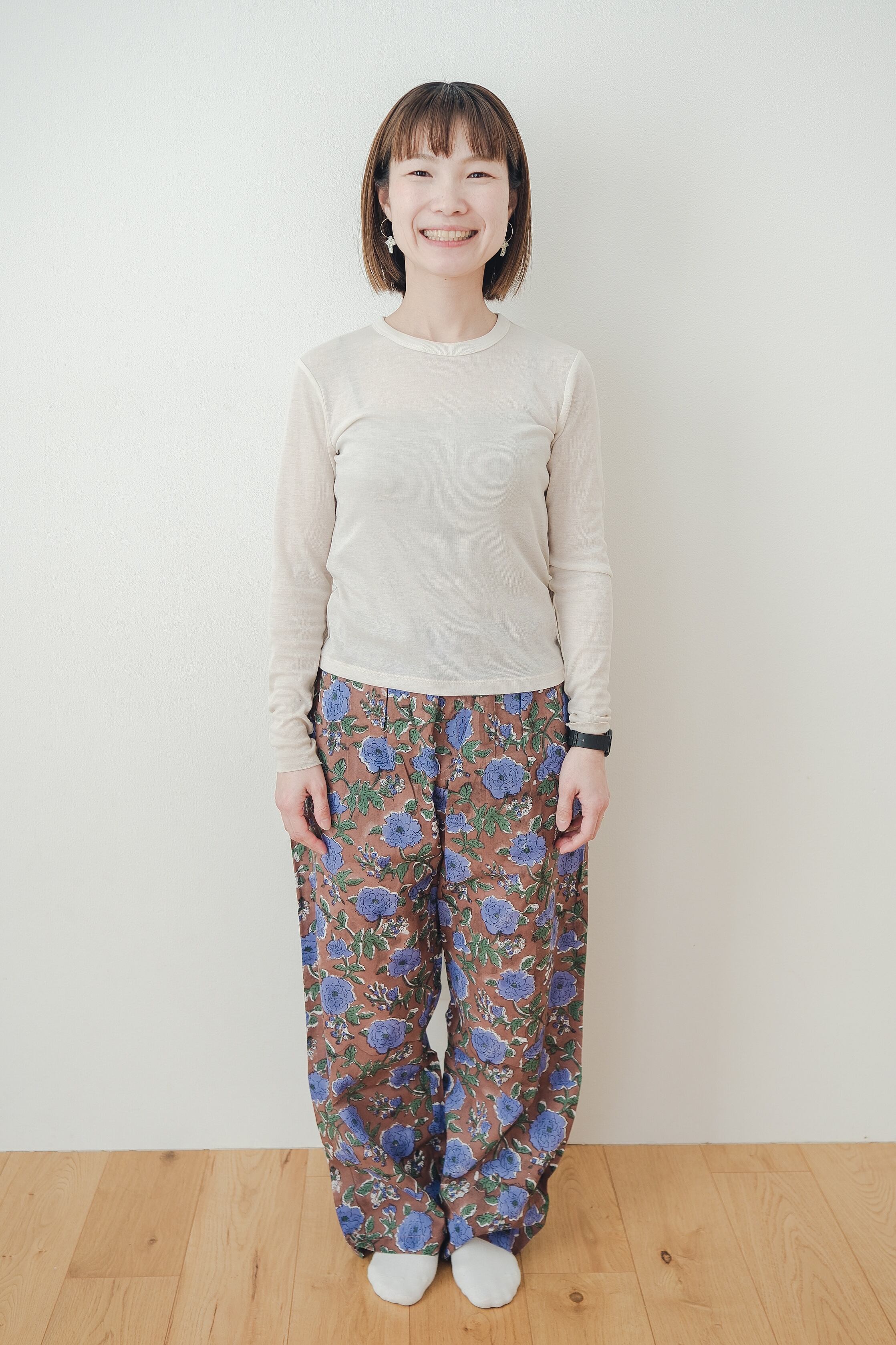 軽いインド綿パンツは季節を問わず快適で、日常にすっと馴染む一本です。