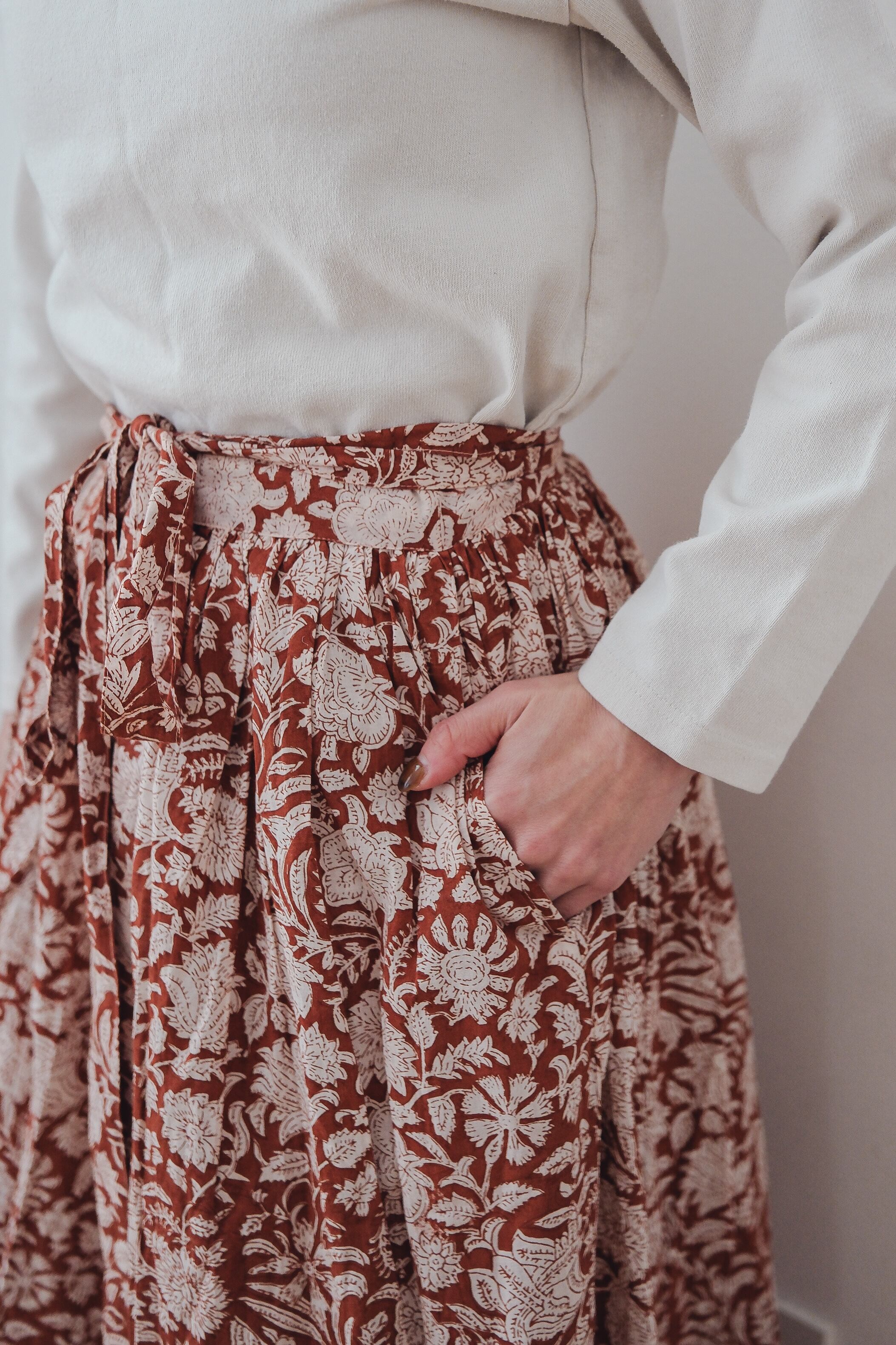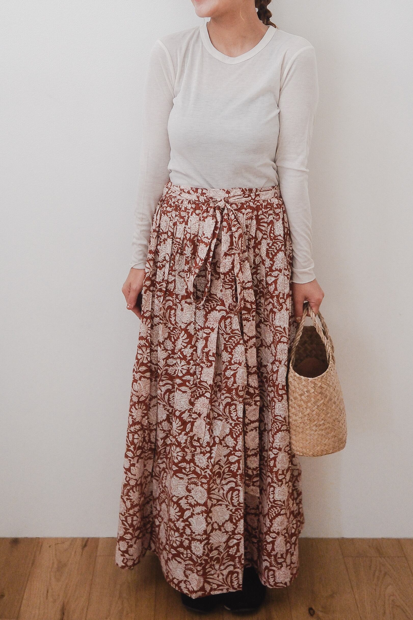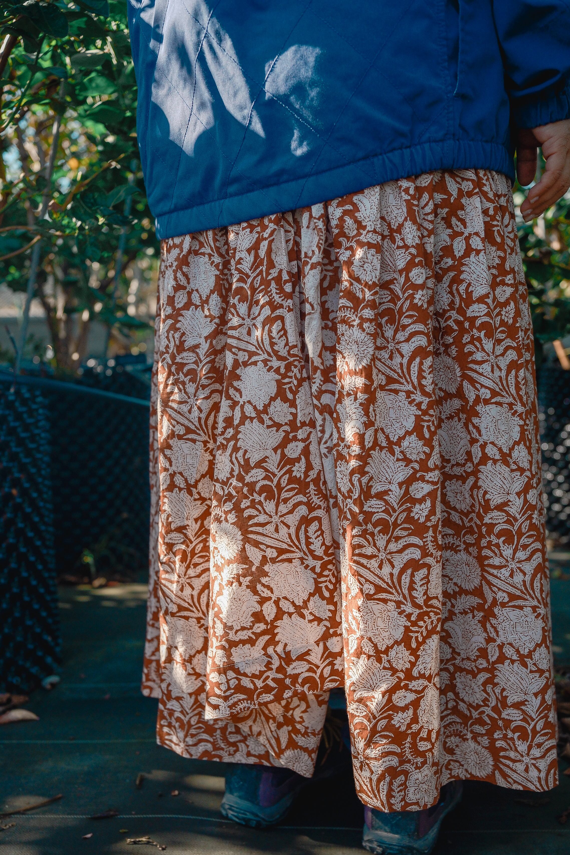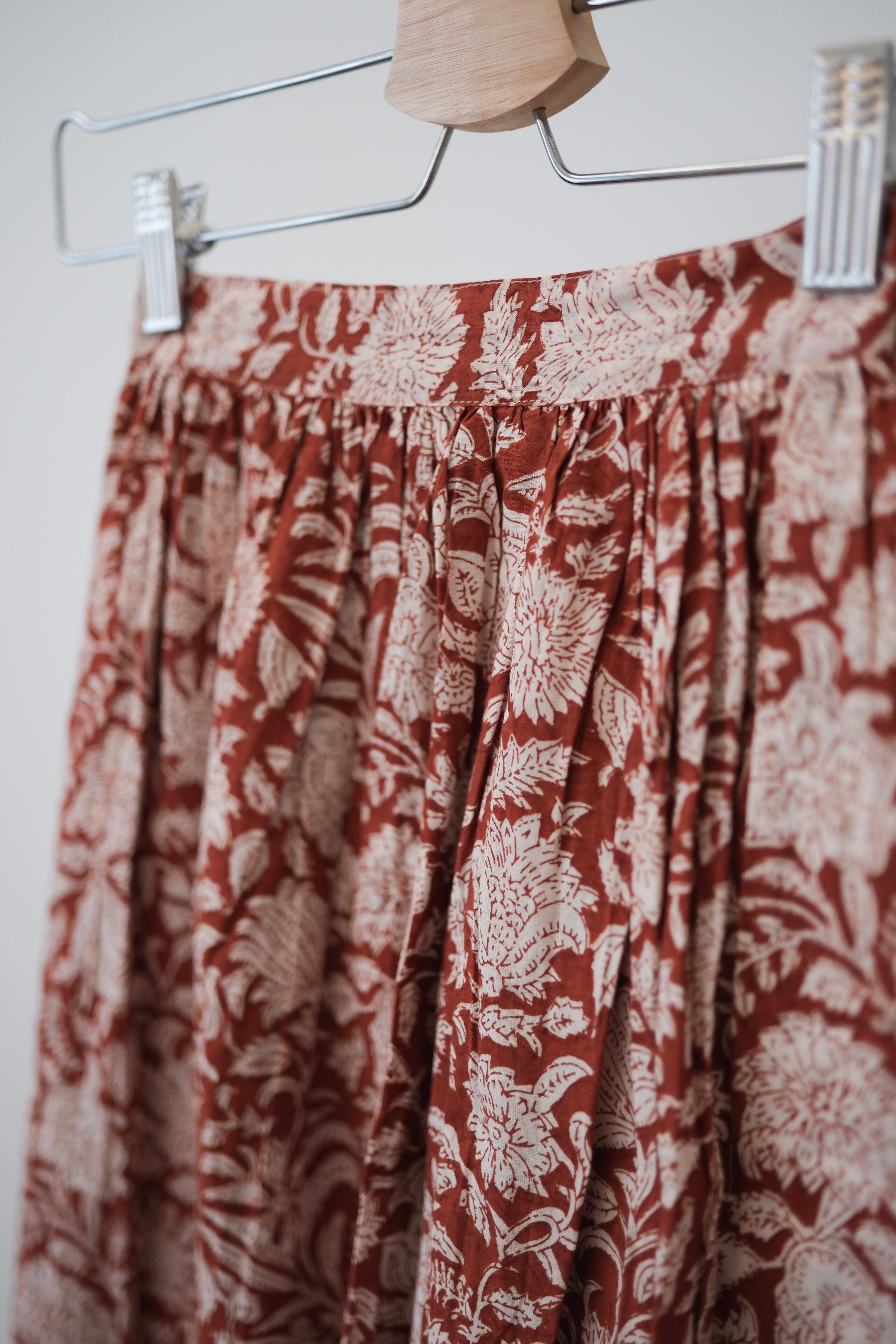 ブロックプリントのラップスカート。