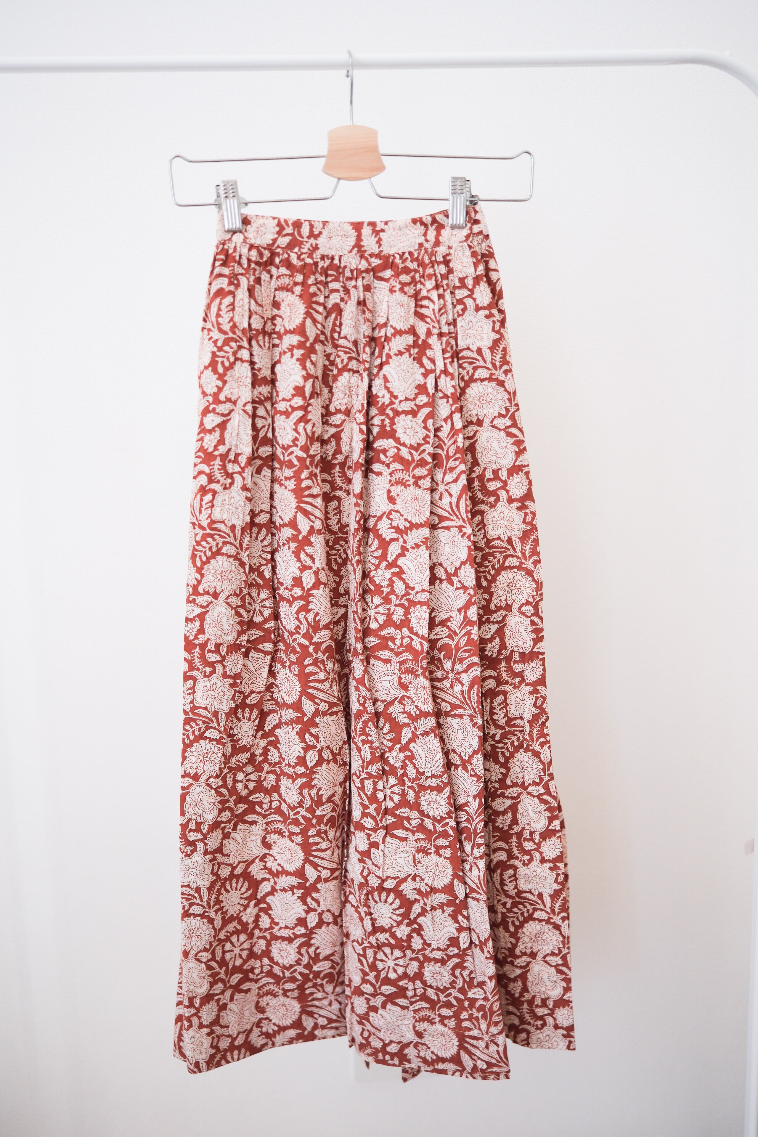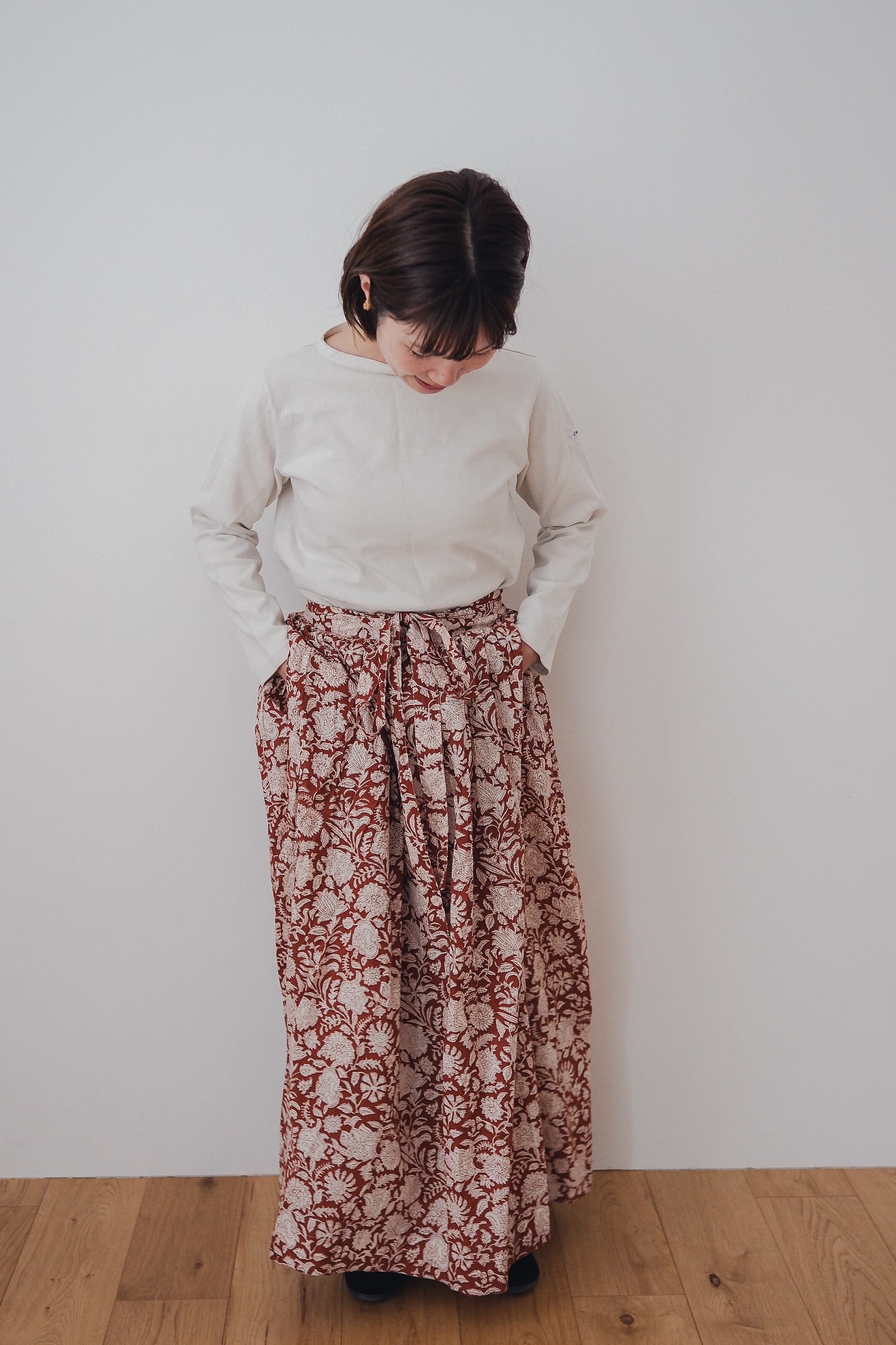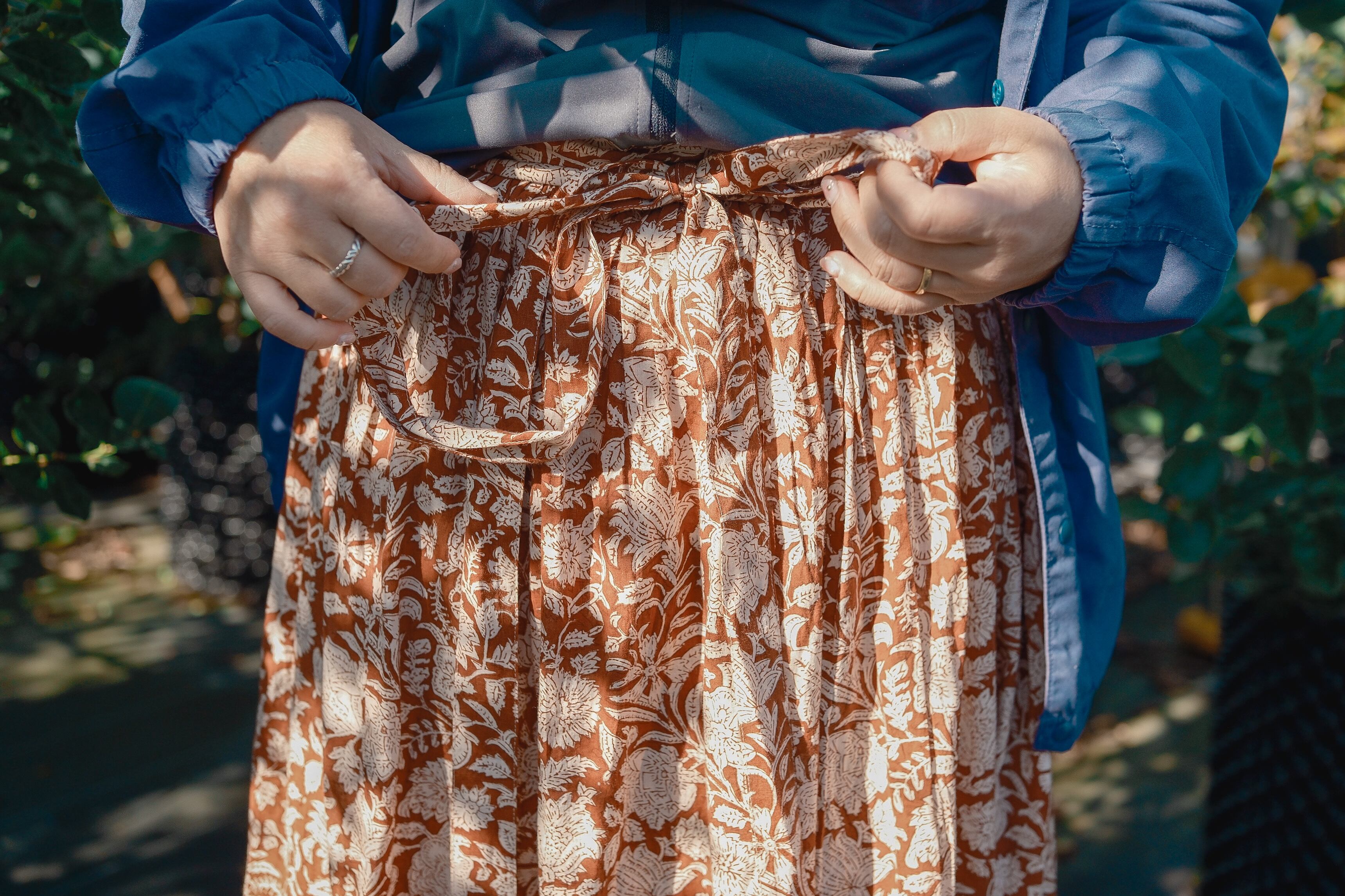 ブロックプリントのラップスカート。