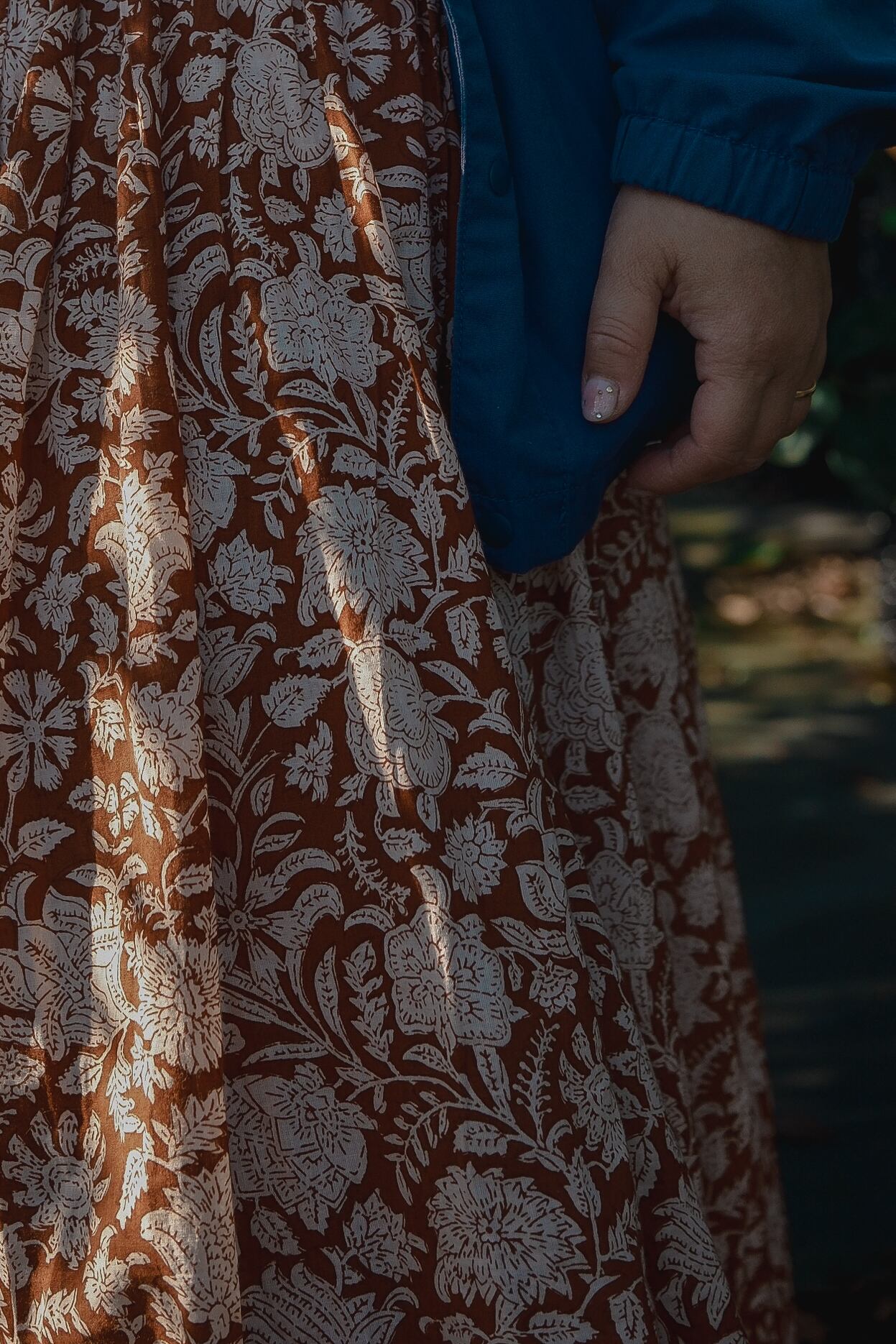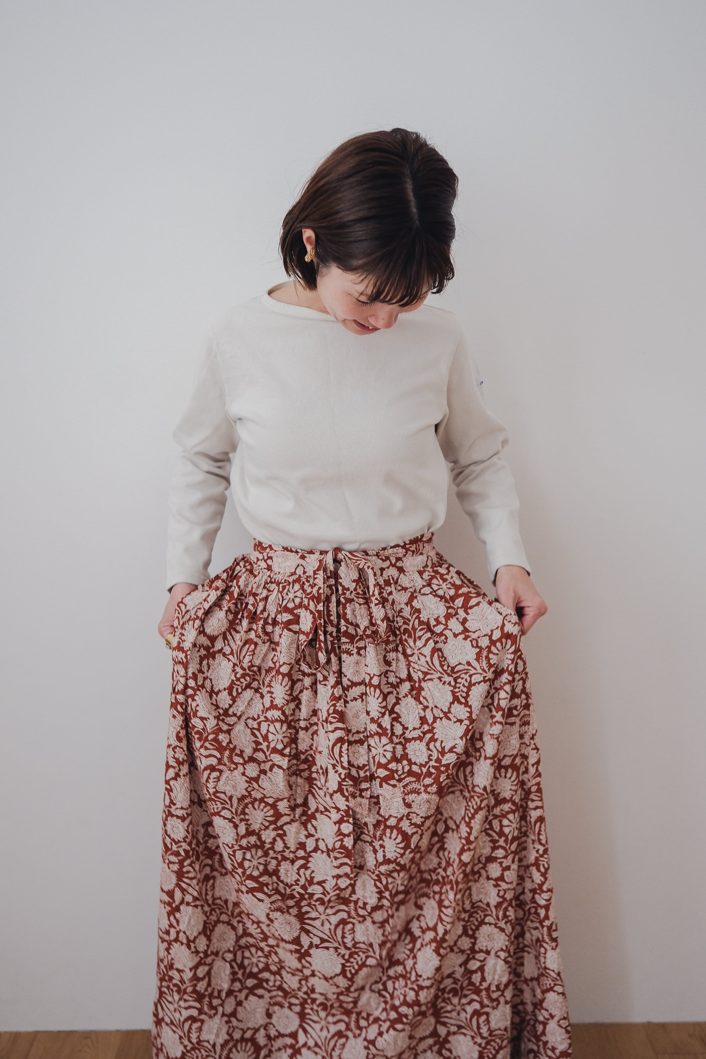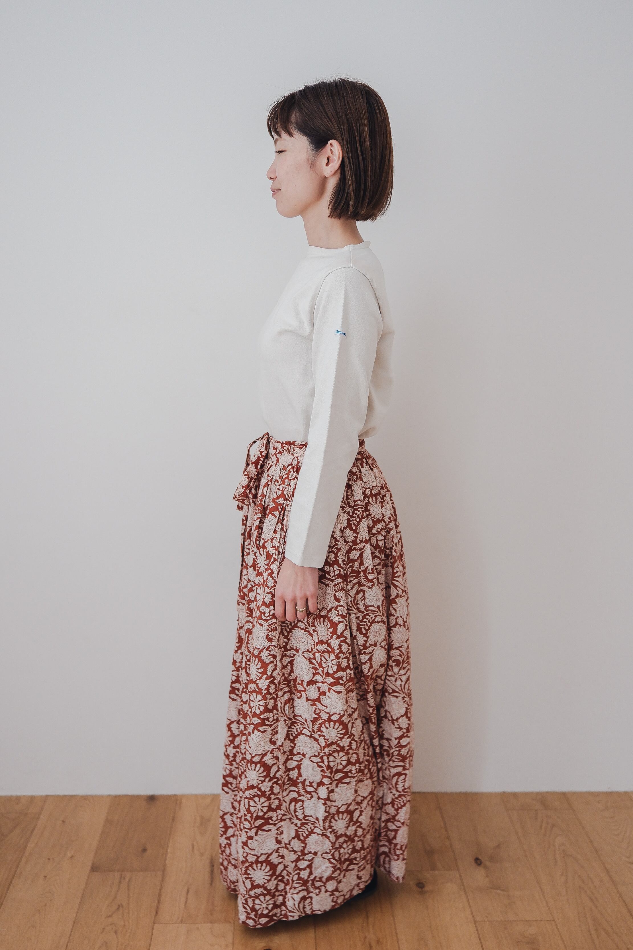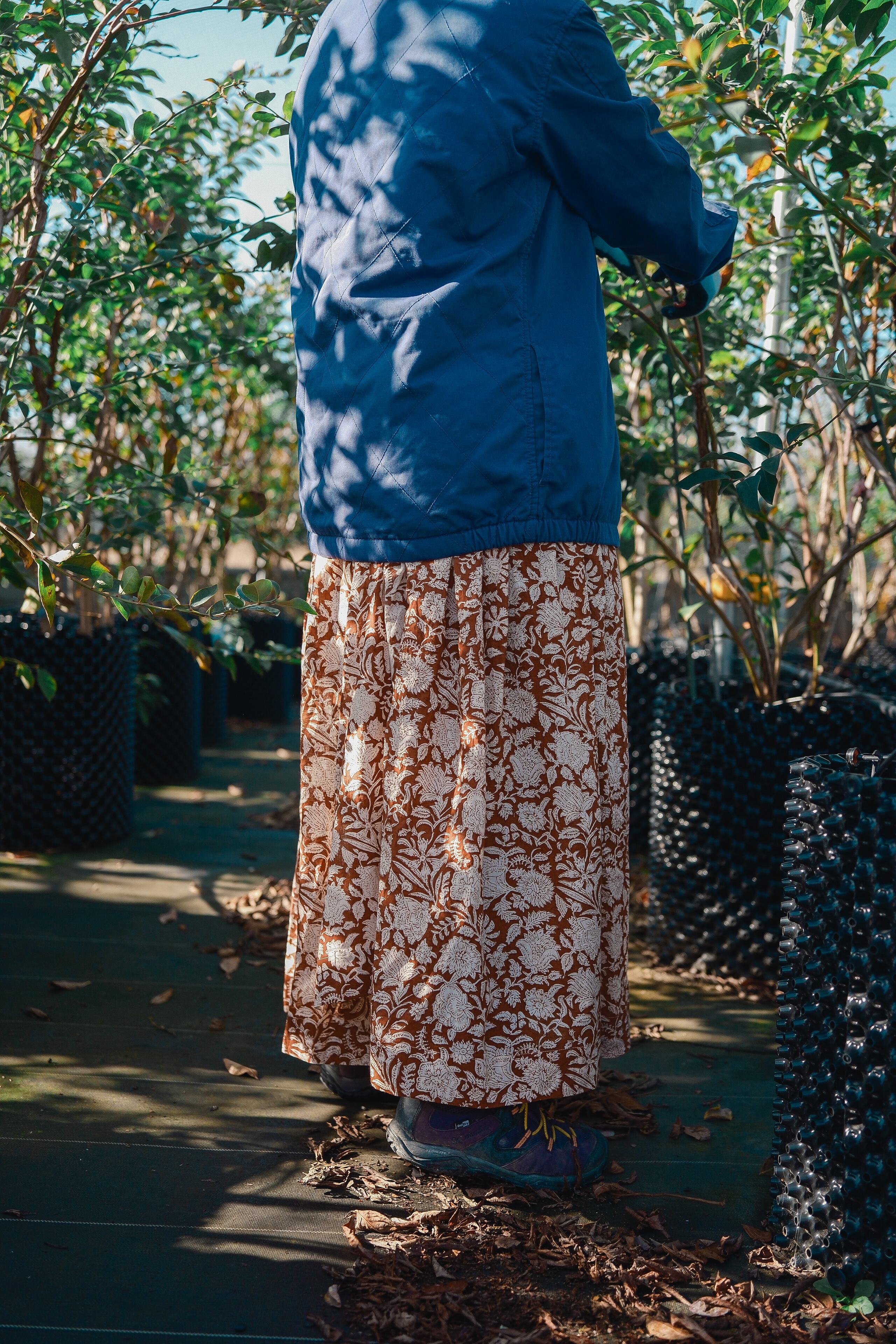 ブロックプリントのラップスカート。
