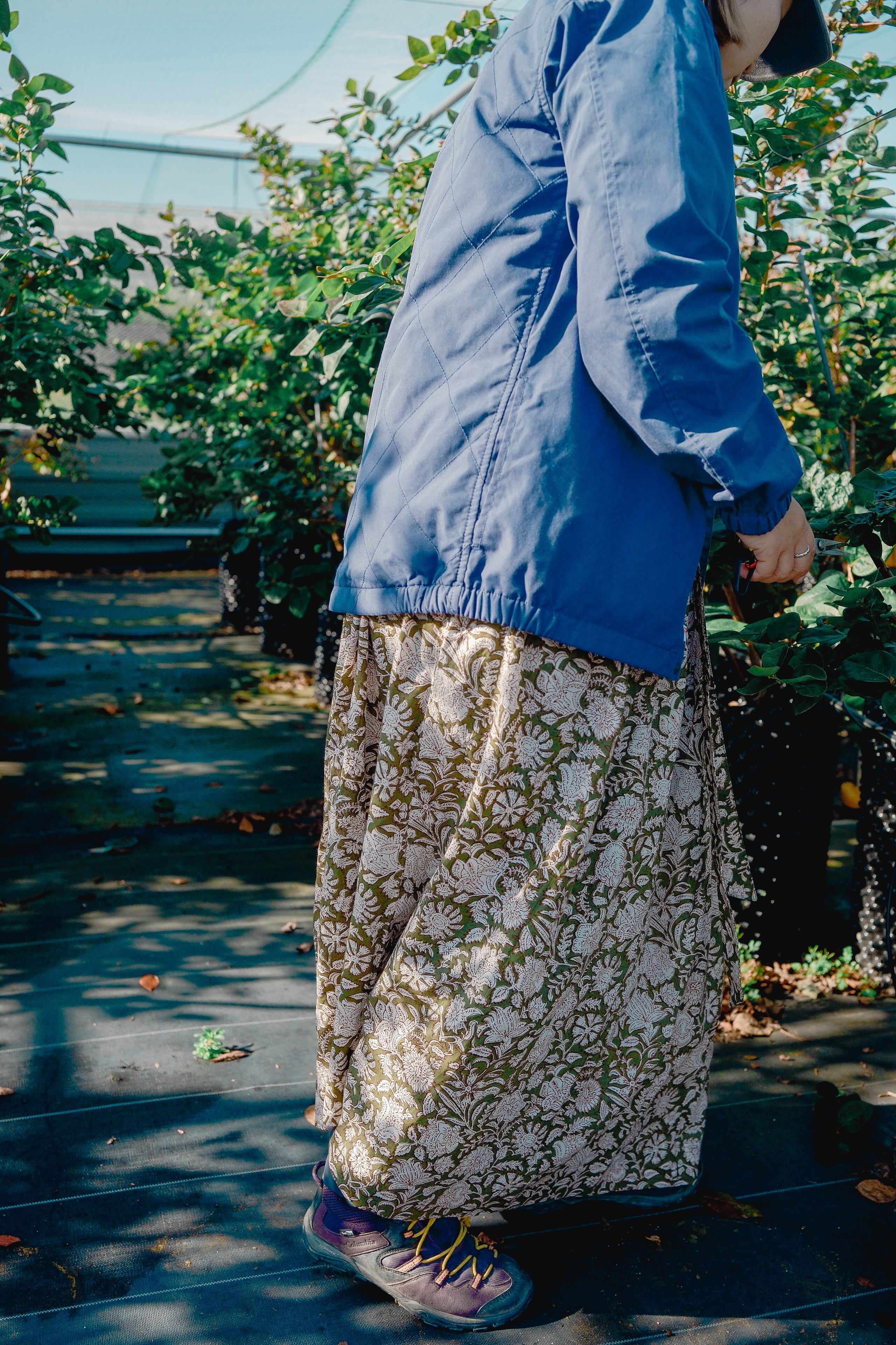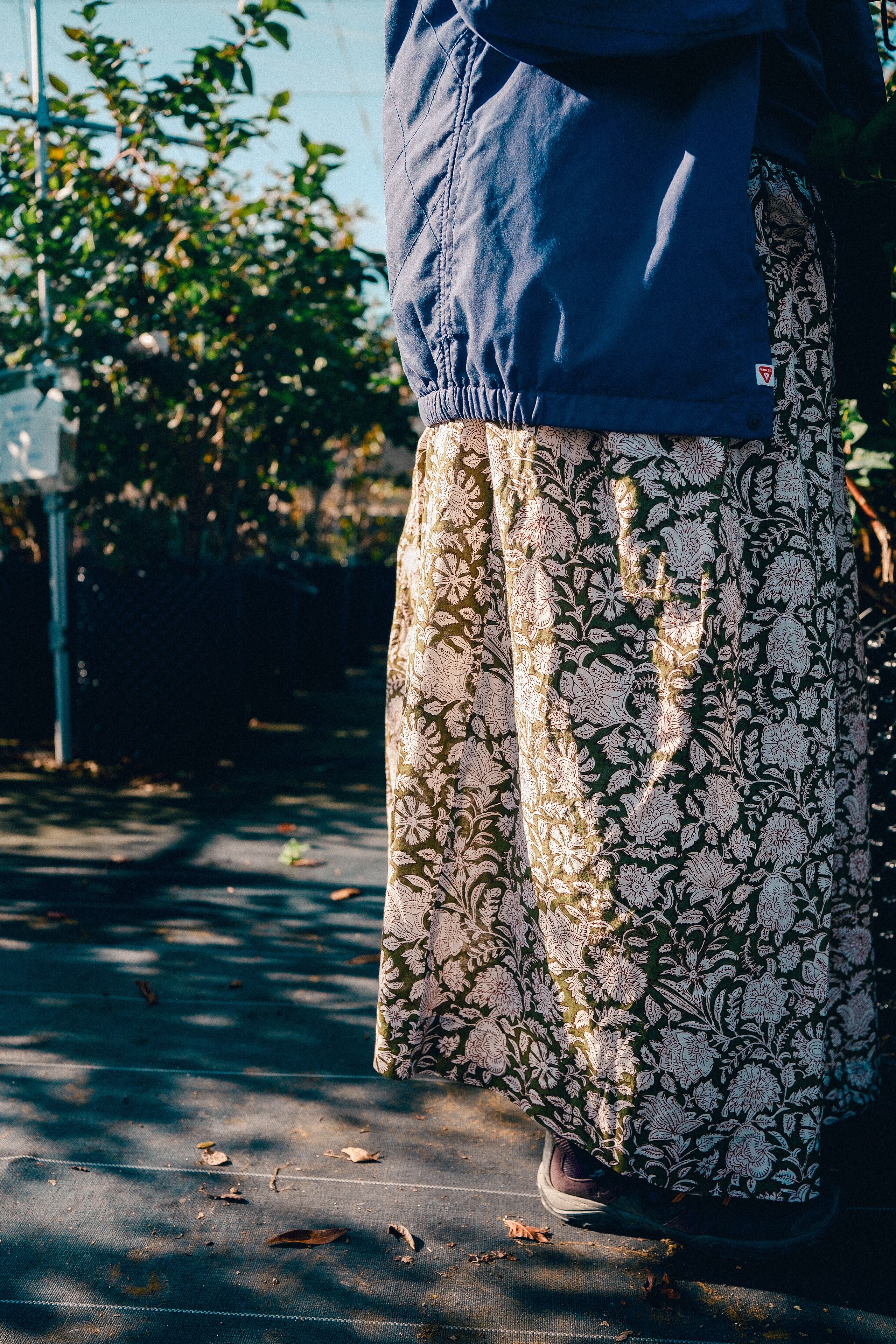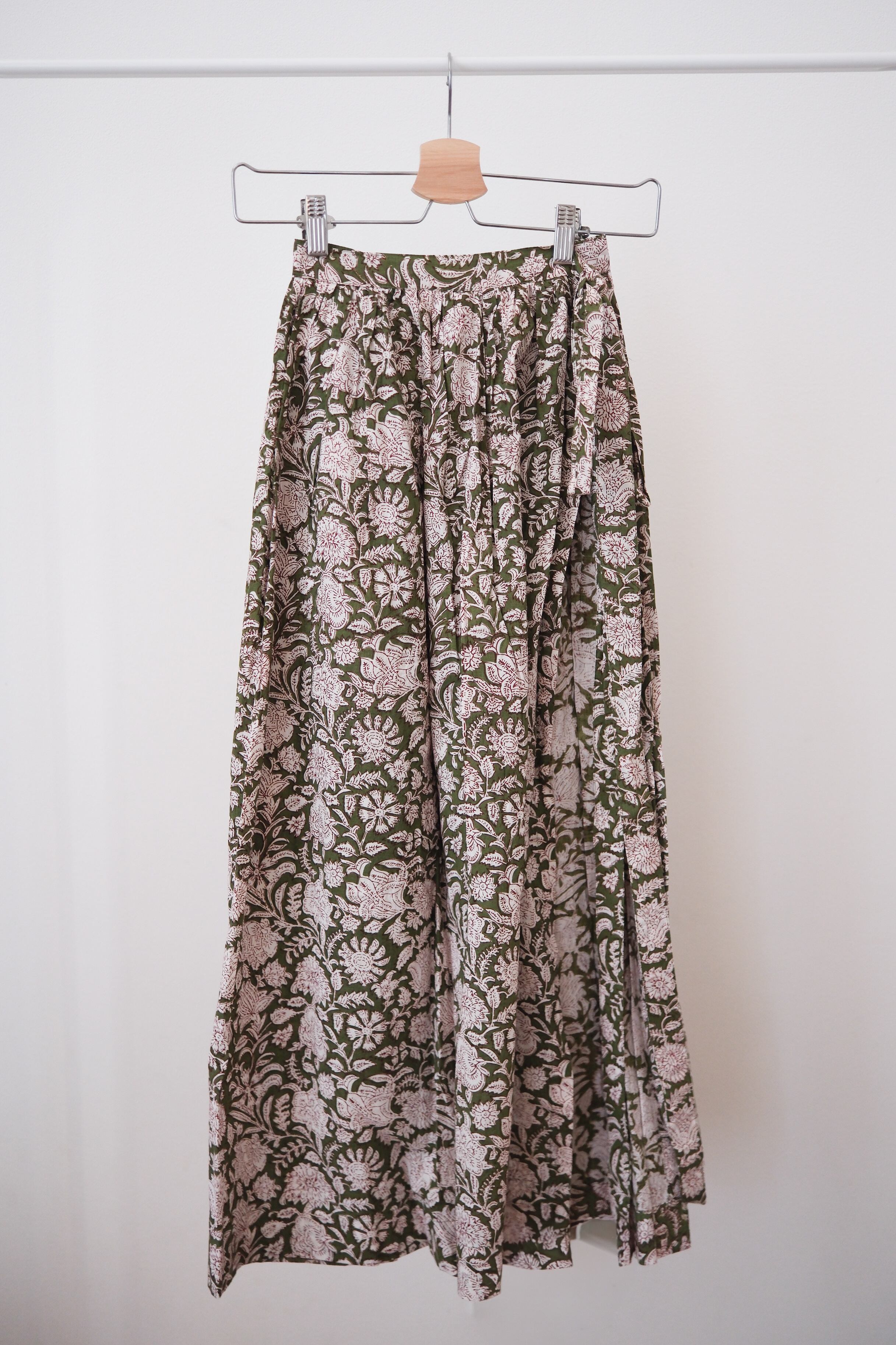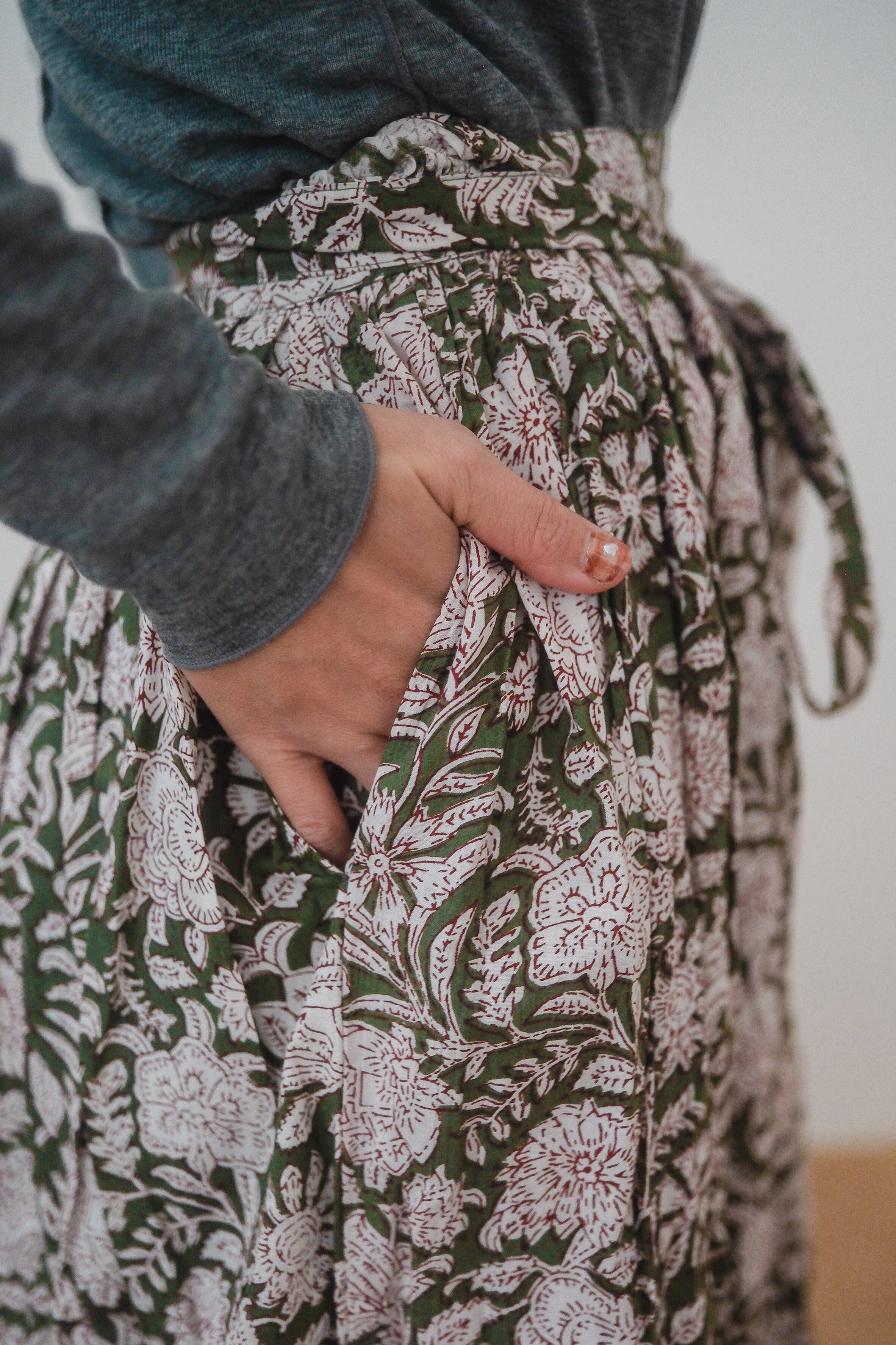 ブロックプリントのラップスカート。