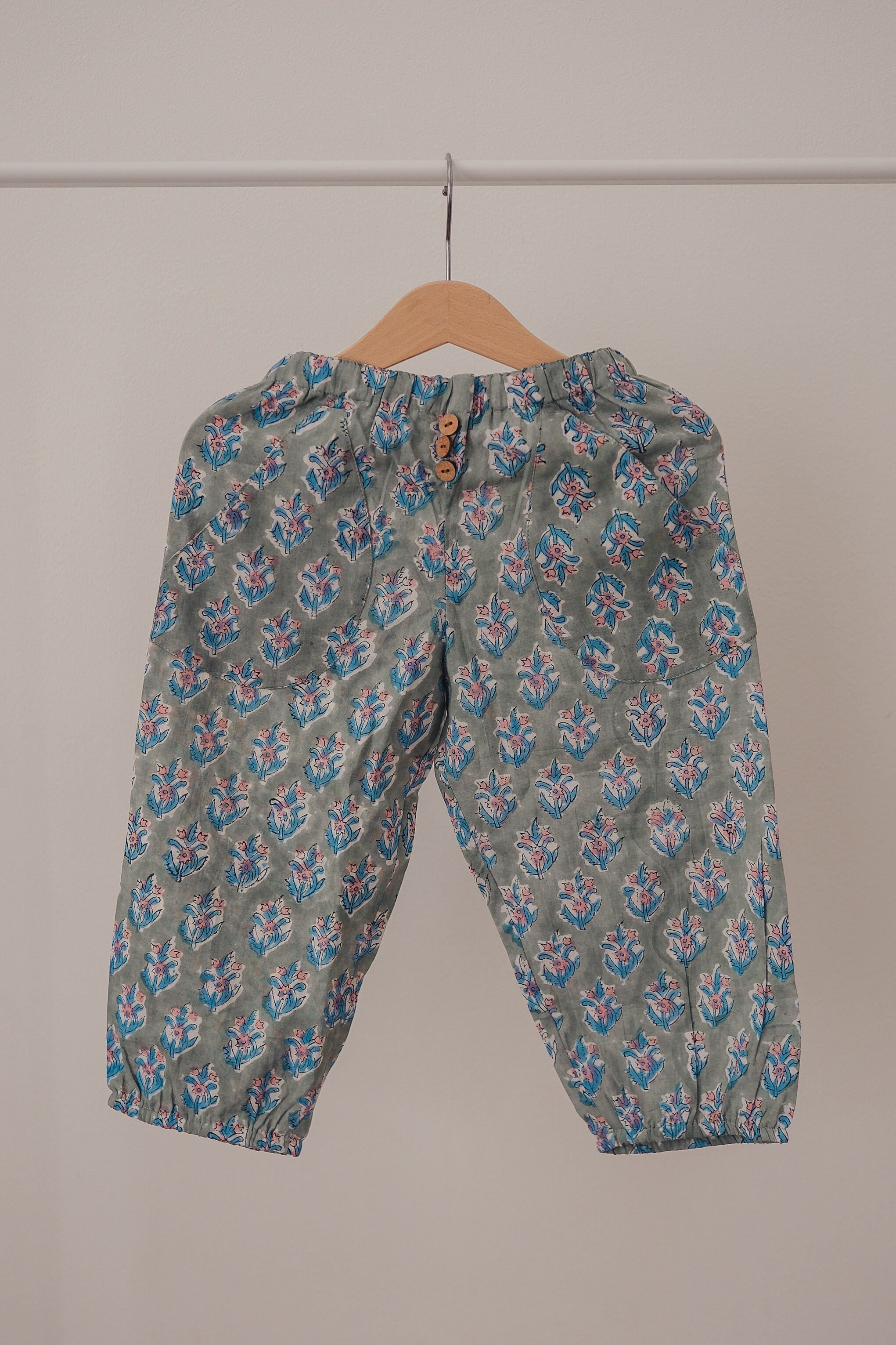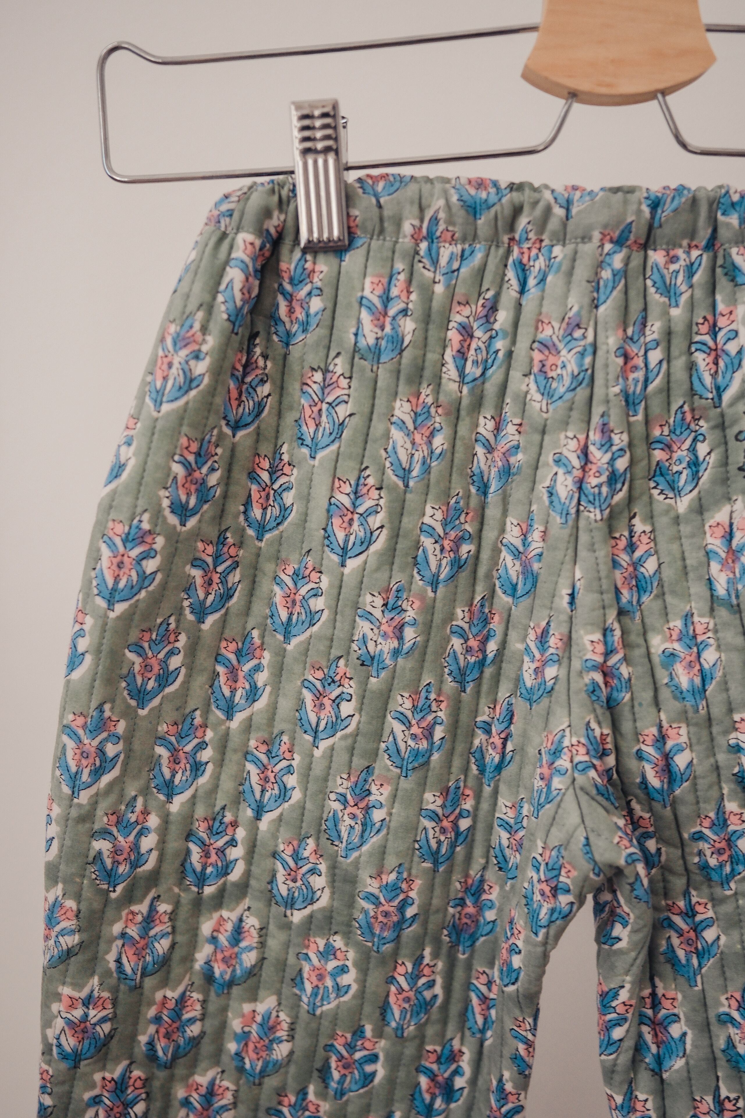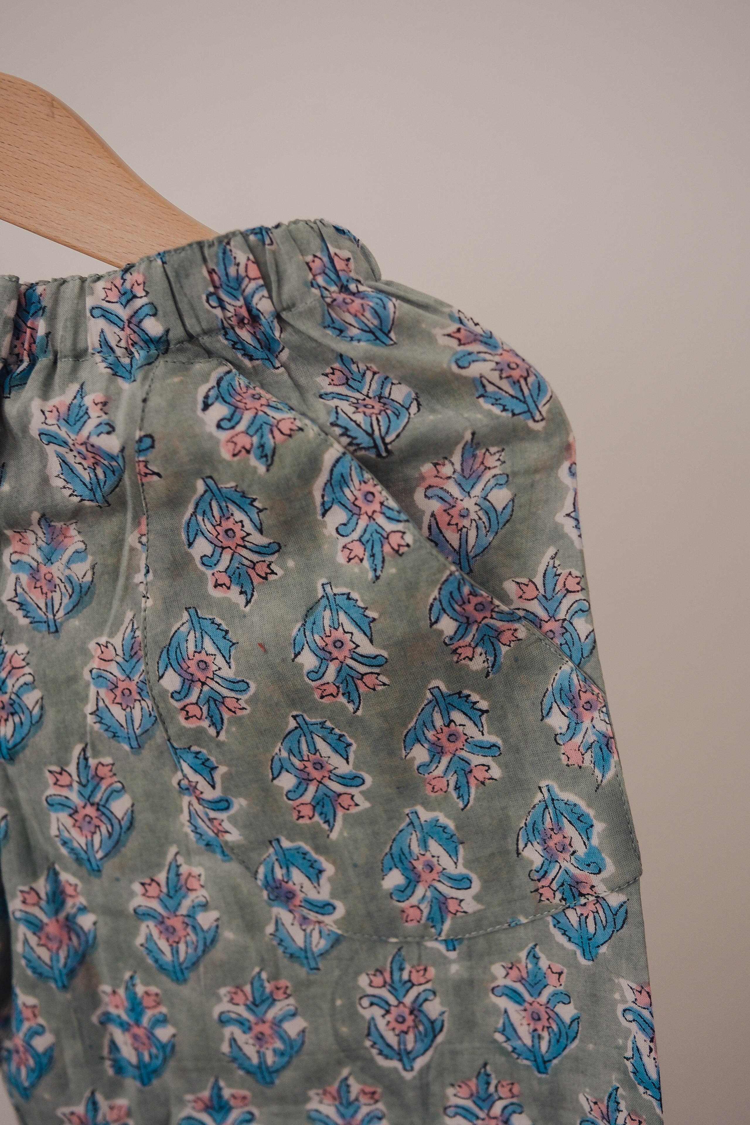 やさしい“くすみグリーン”の地に、小さな花模様をそっと咲かせた