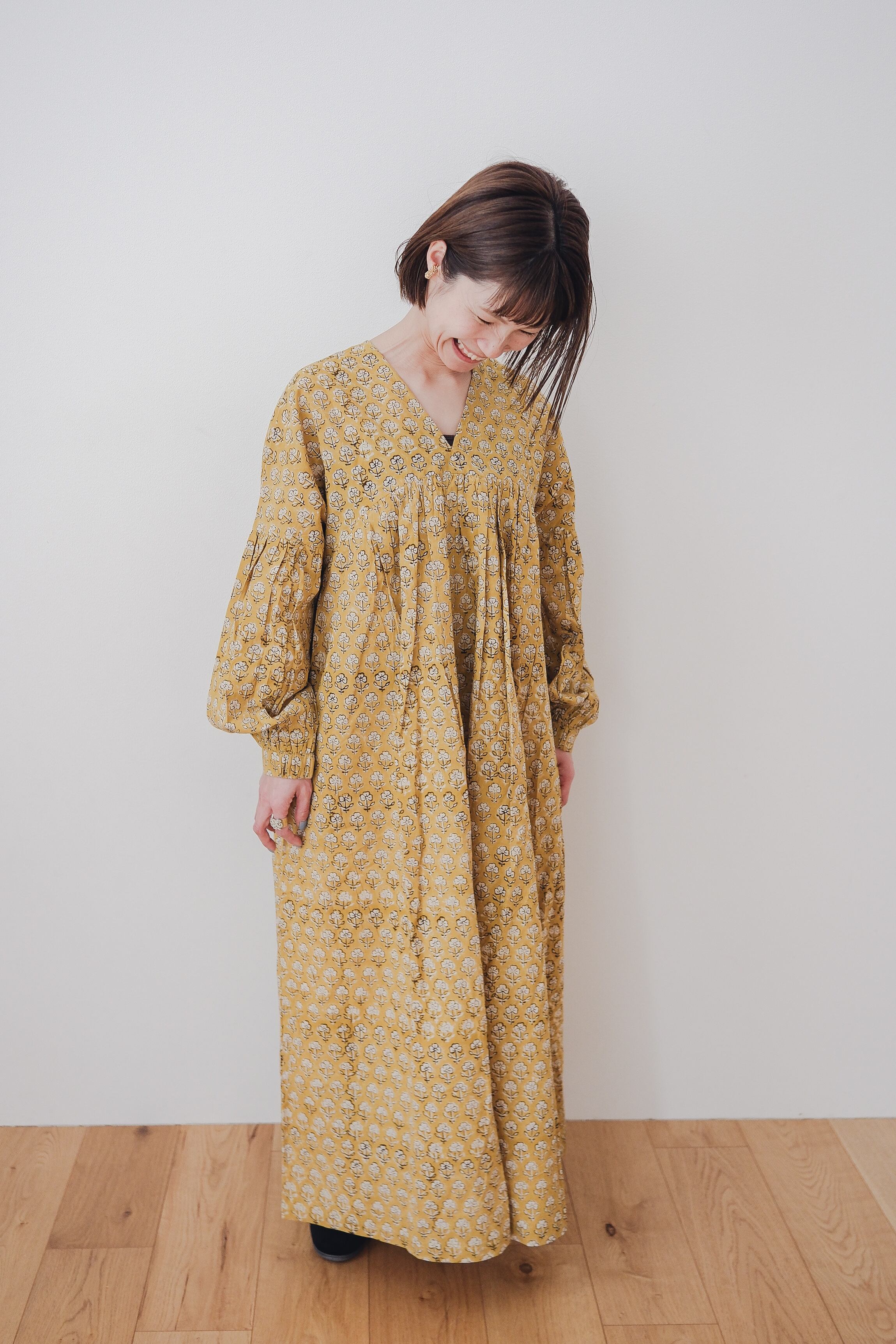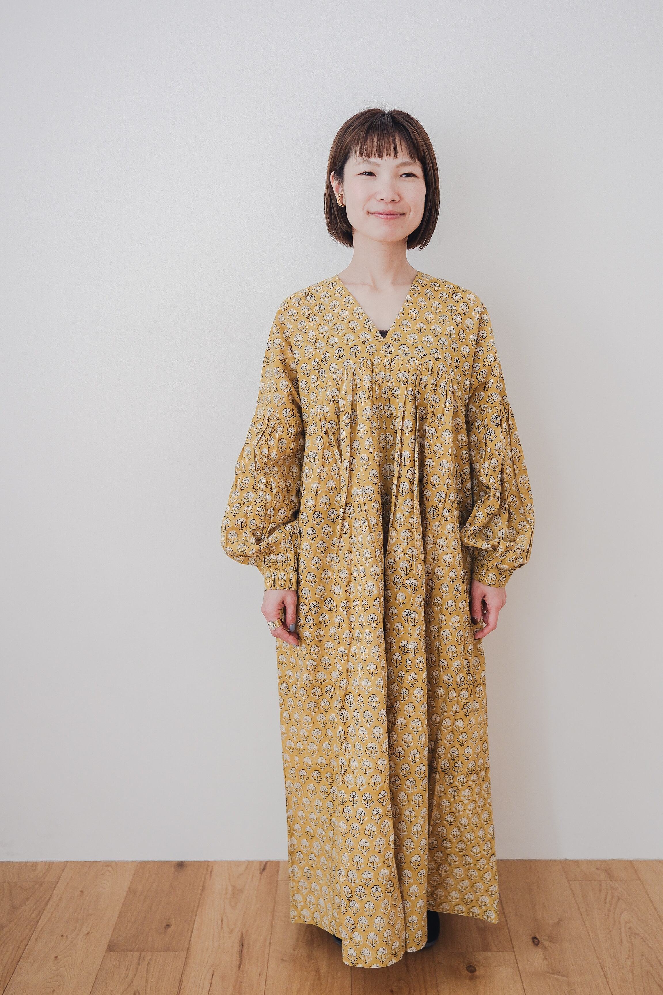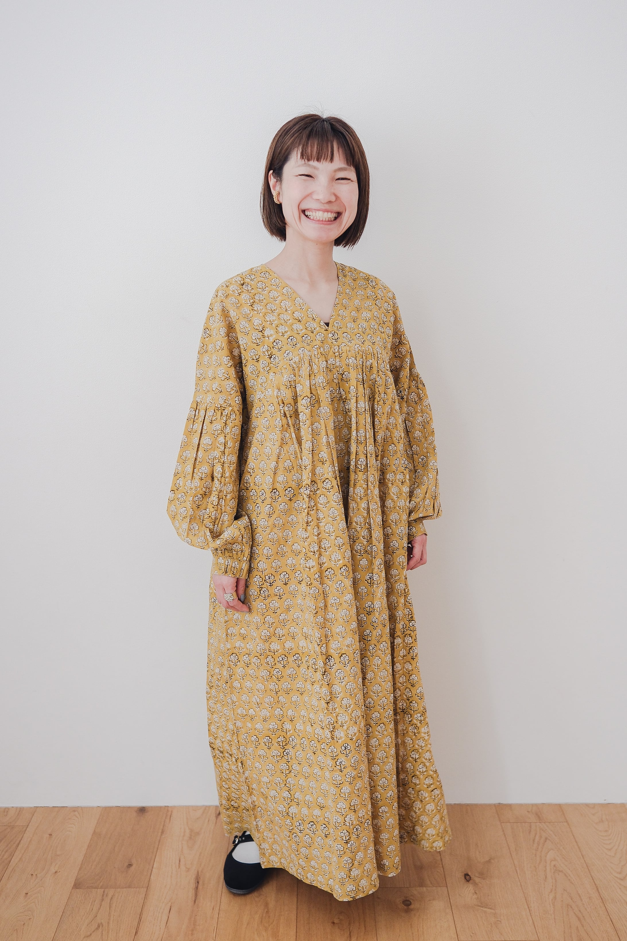 丸みのある “ぽわん袖” が、ふんわりとやさしい印象をつくる定番の長袖ワンピース。