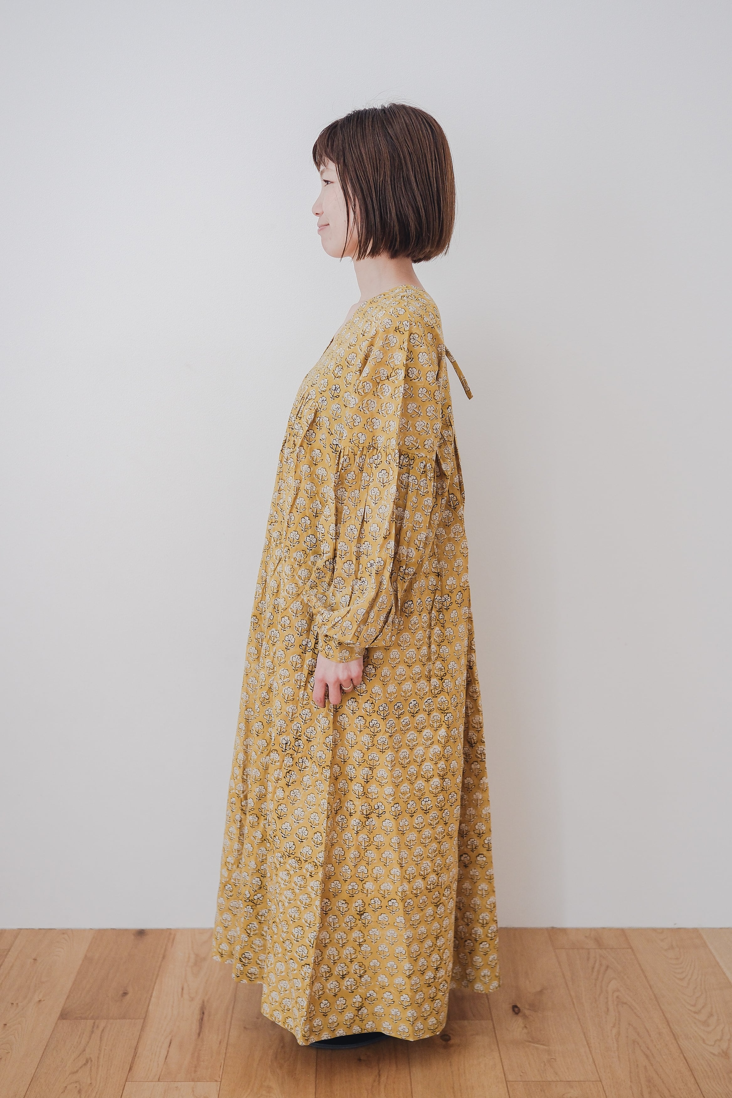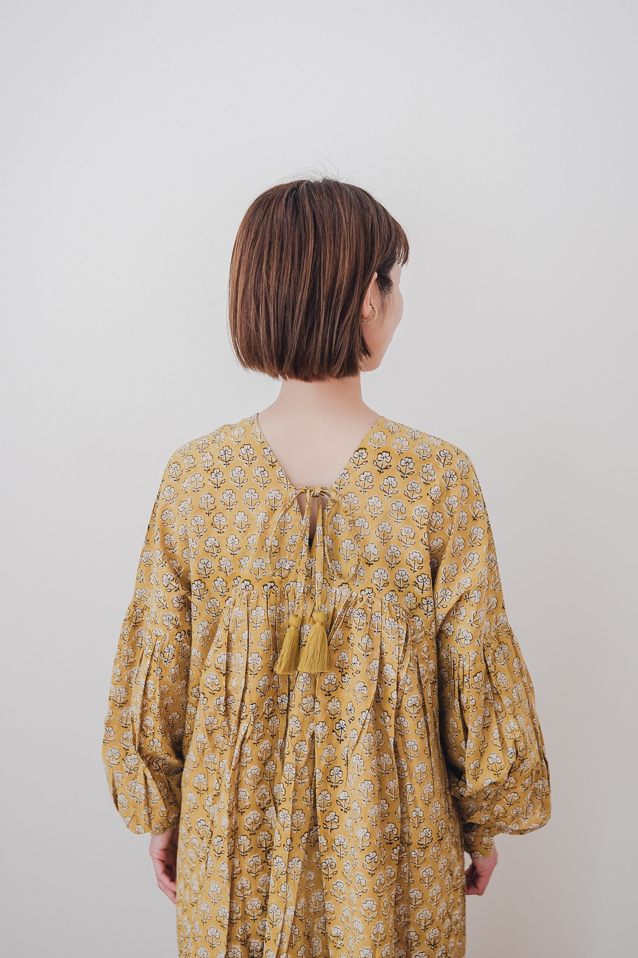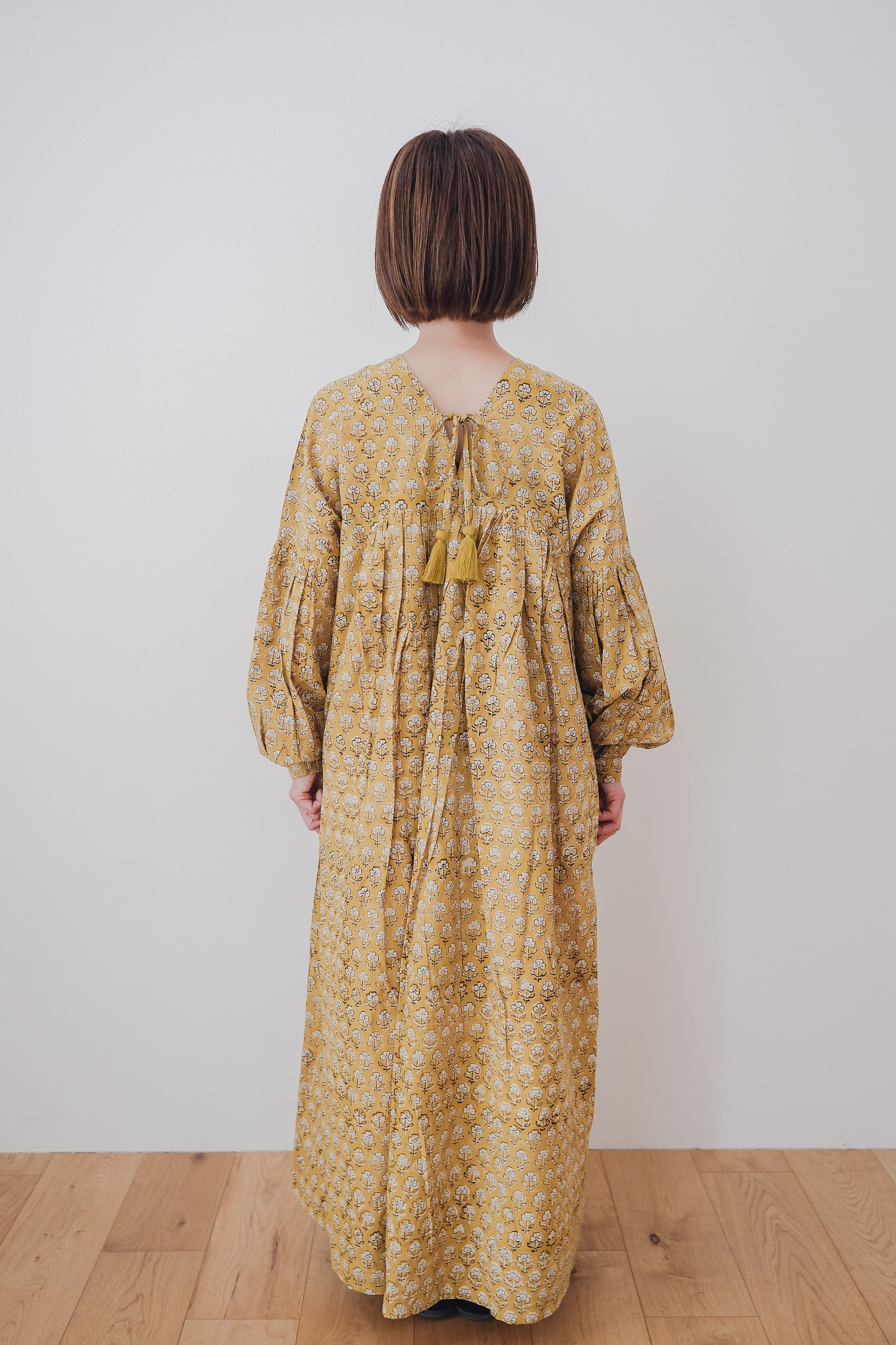 丸みのある “ぽわん袖” が、ふんわりとやさしい印象をつくる定番の長袖ワンピース。