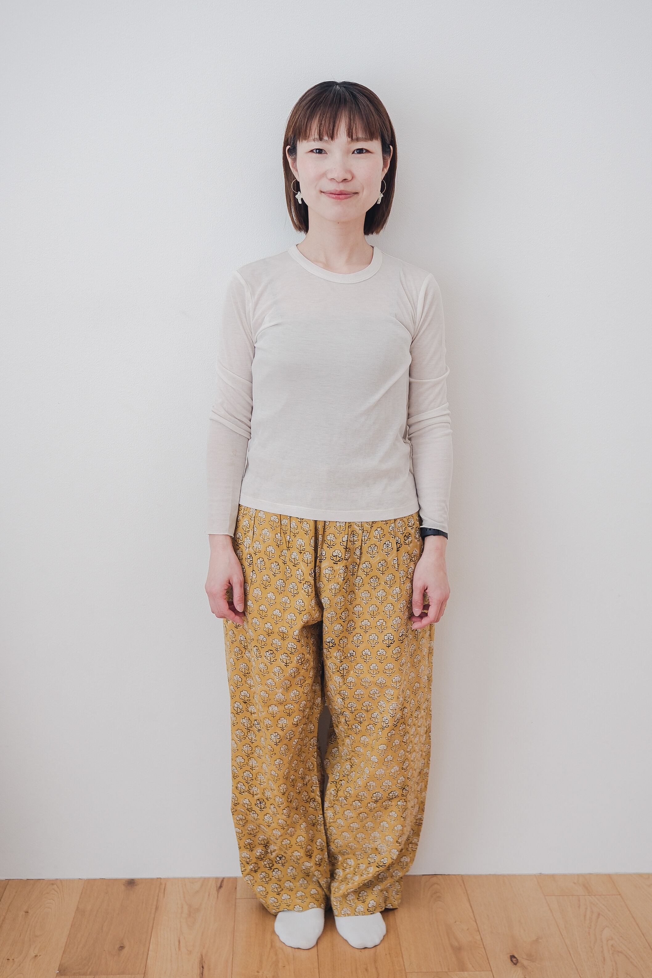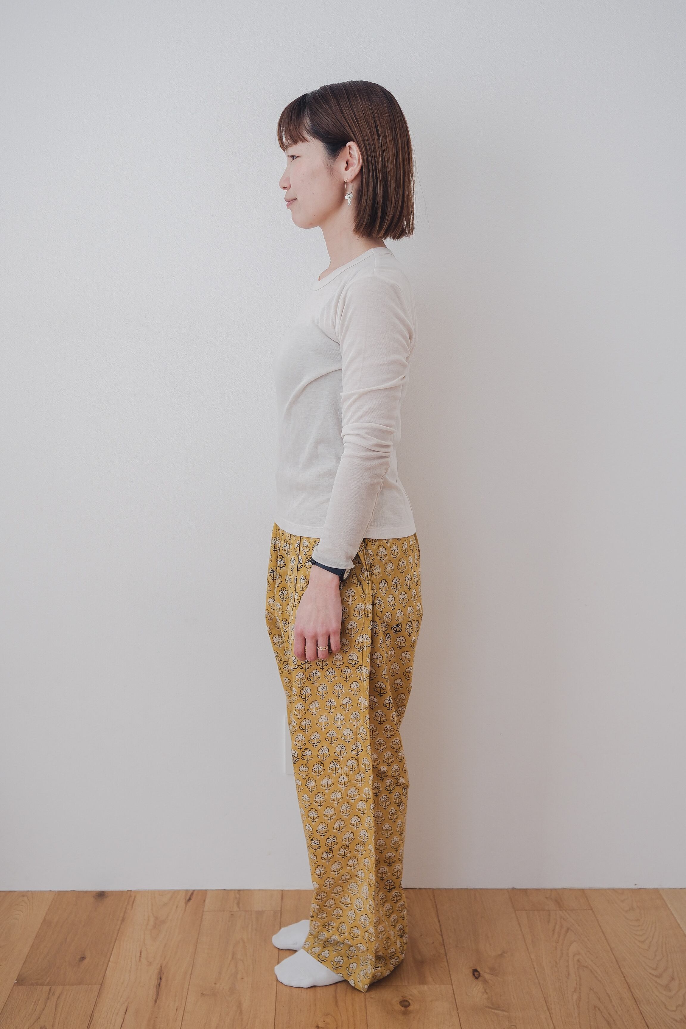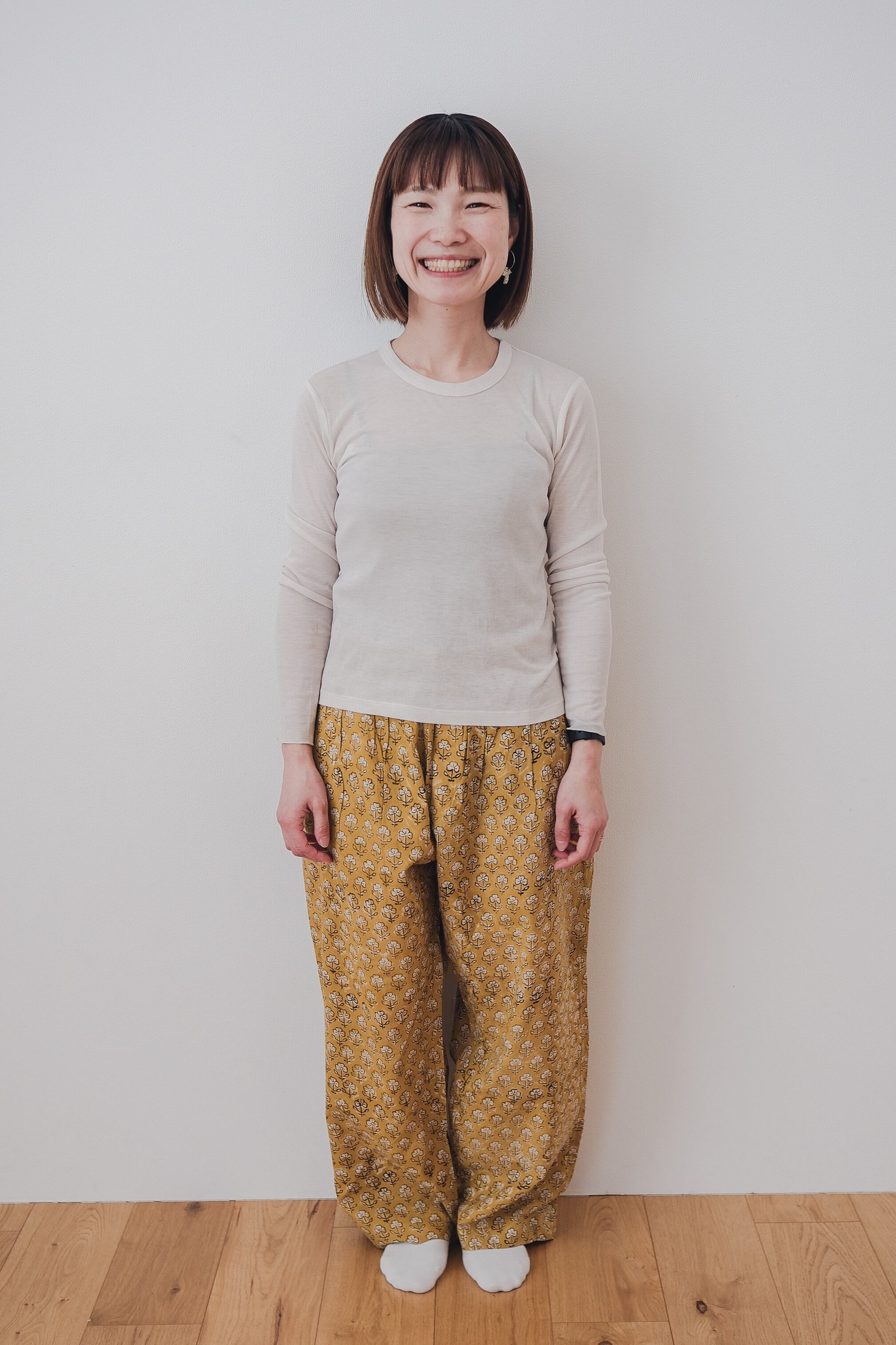 やわらかなマスタードカラーに、繊細な花模様。