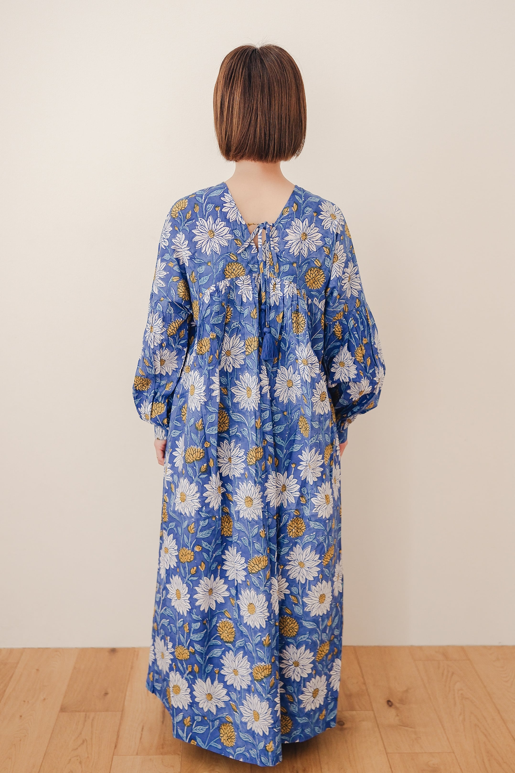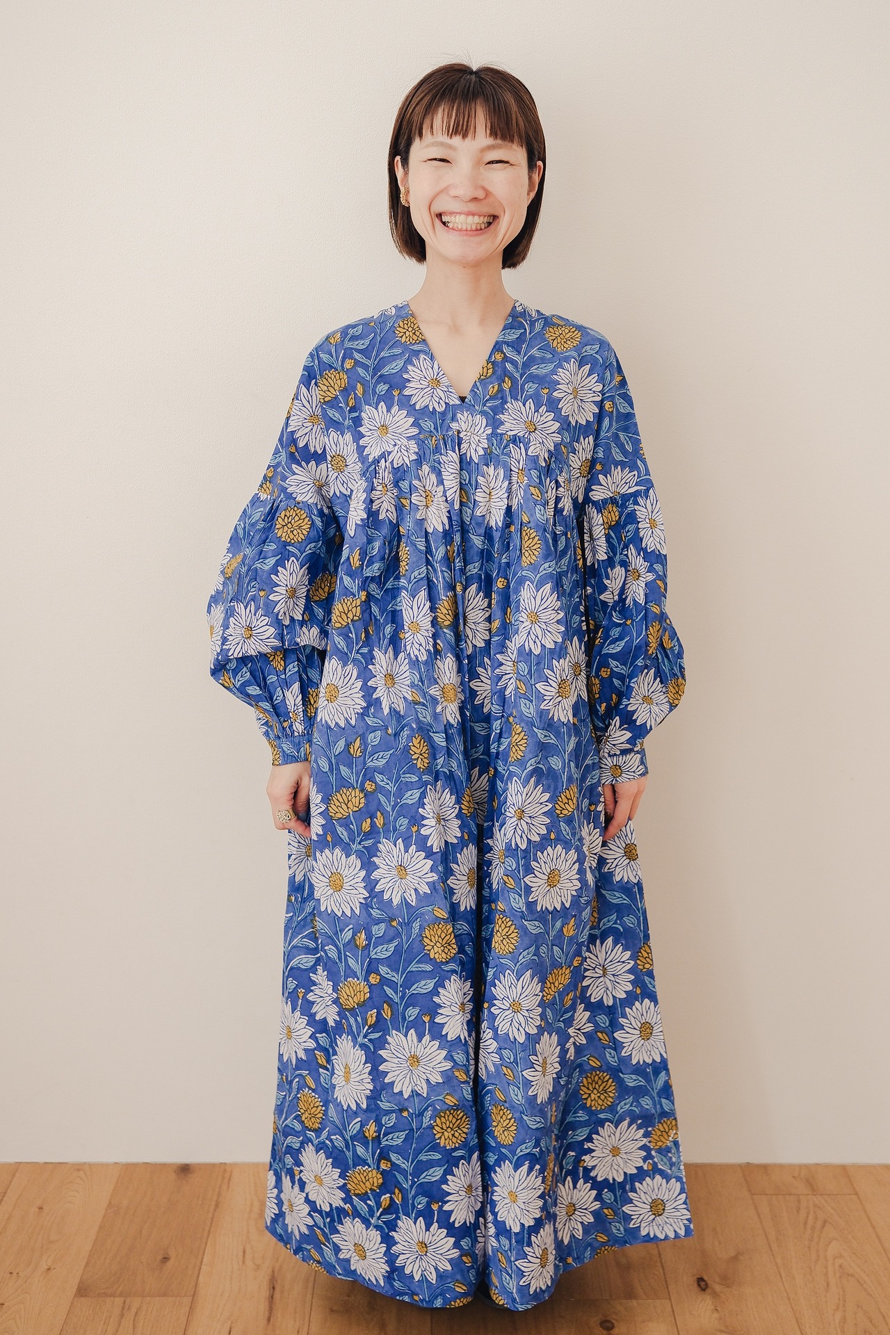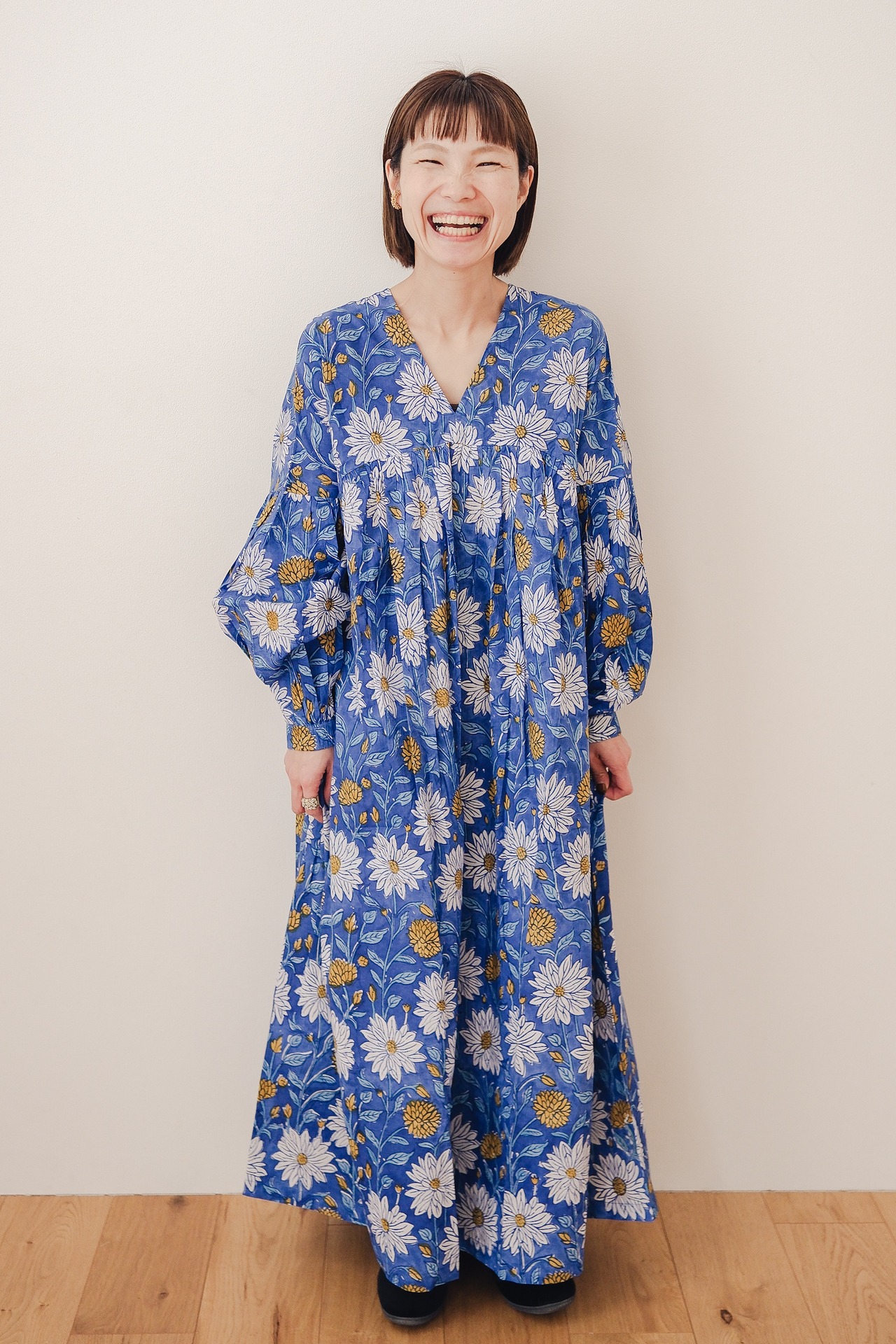 丸みのある “ぽわん袖” が、ふんわりとやさしい印象をつくる定番の長袖ワンピース。