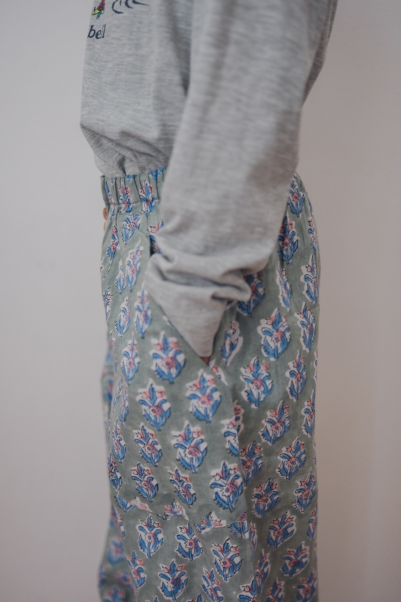 やさしい“くすみグリーン”の地に、小さな花模様をそっと咲かせた